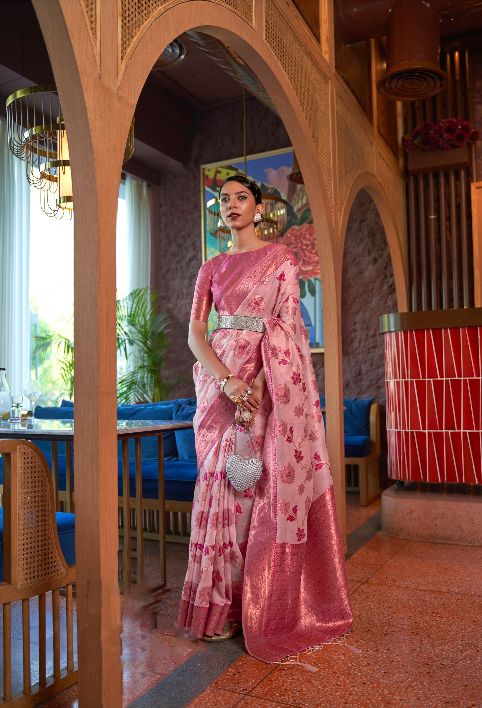 Pink Kadvika Silk Shimmer Copper woven Saree
