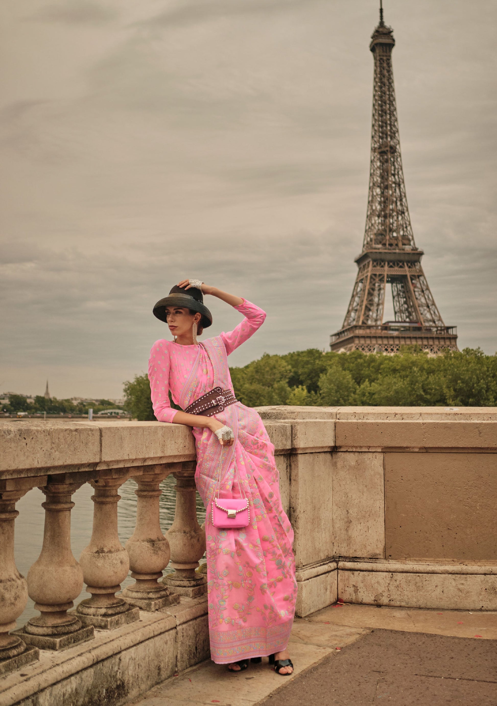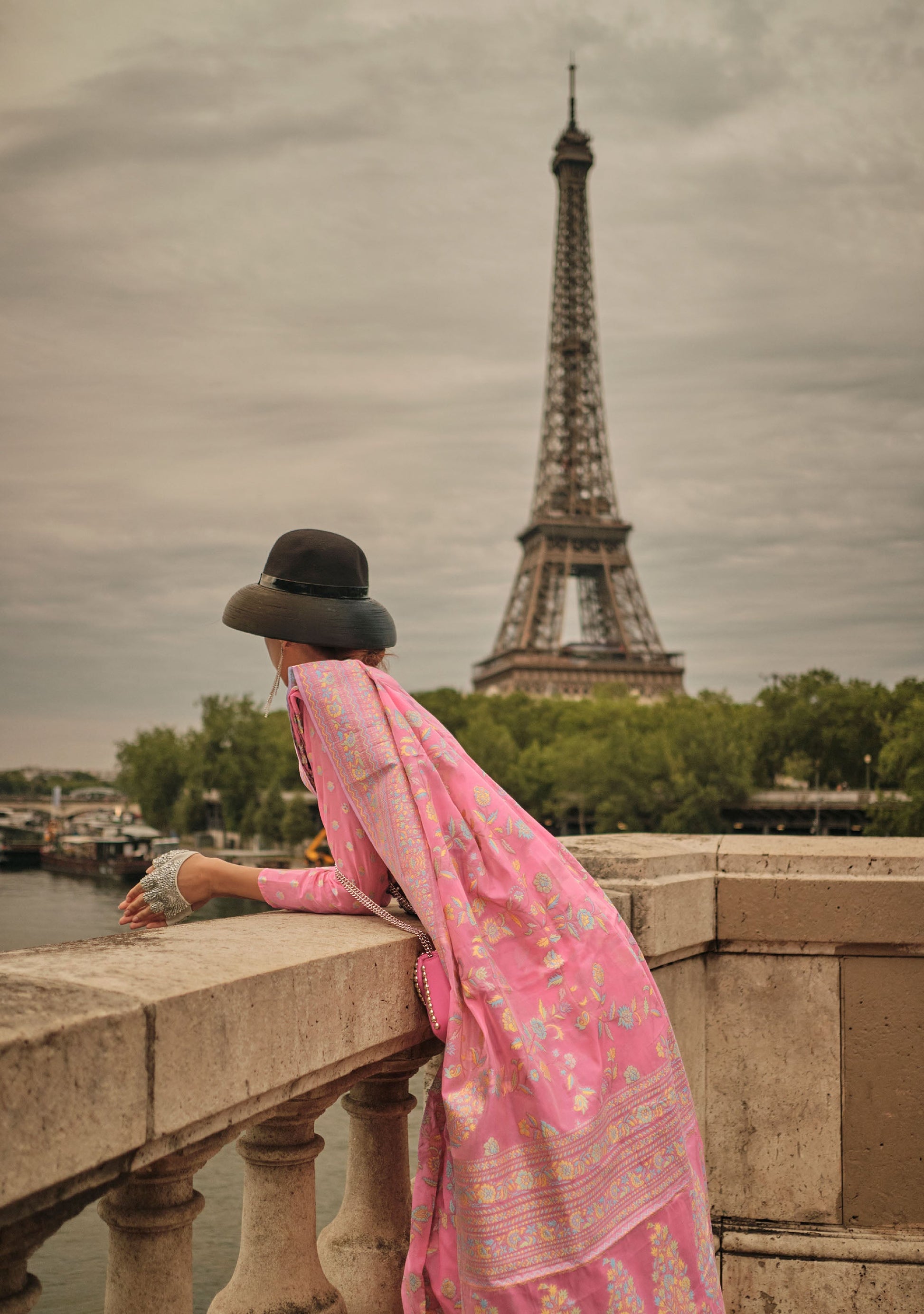 Pink Kalila Silk Kashmiri Organza handloom saree