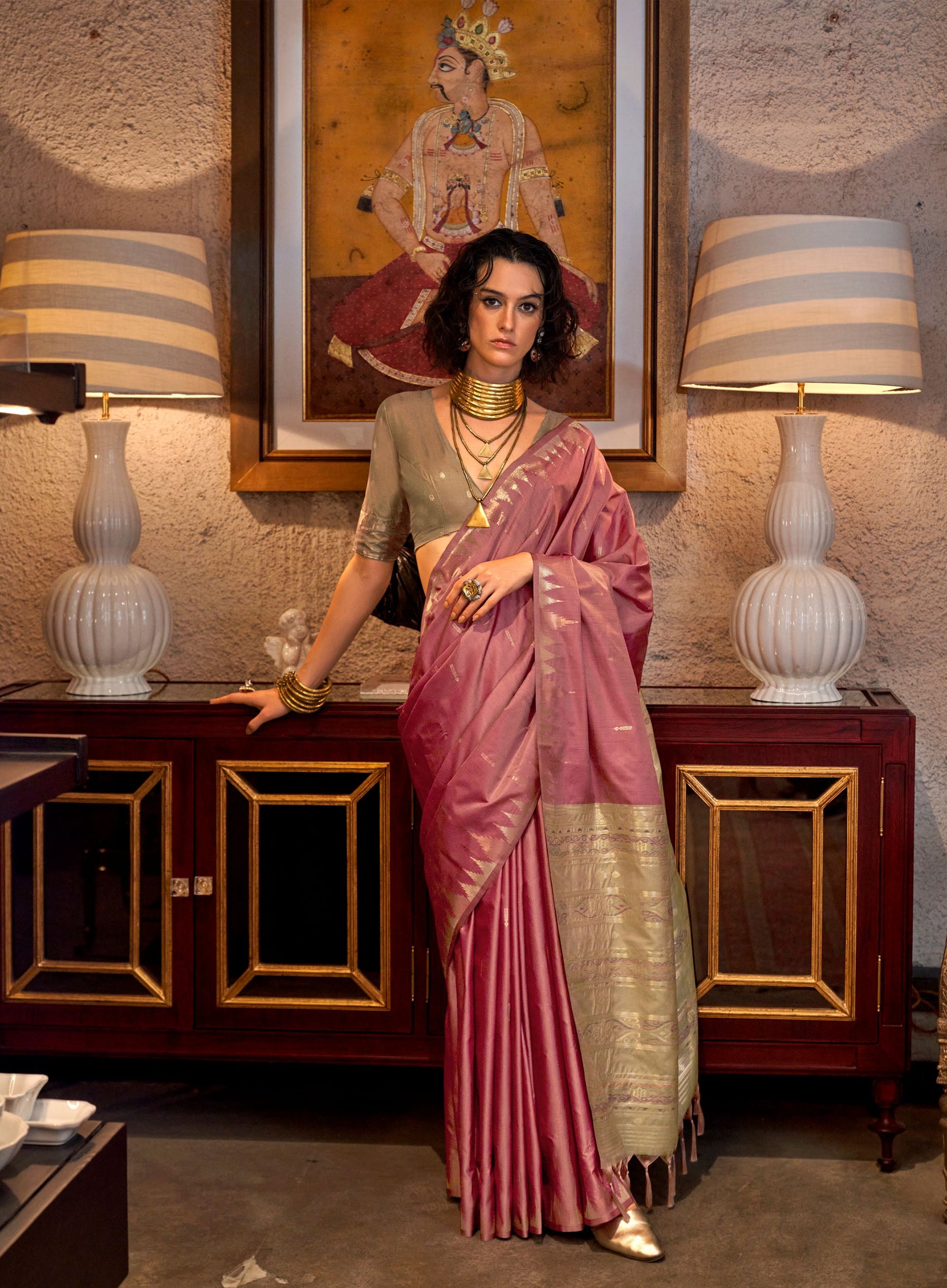 Pink Kontessa Tussar Silk Handloom Saree