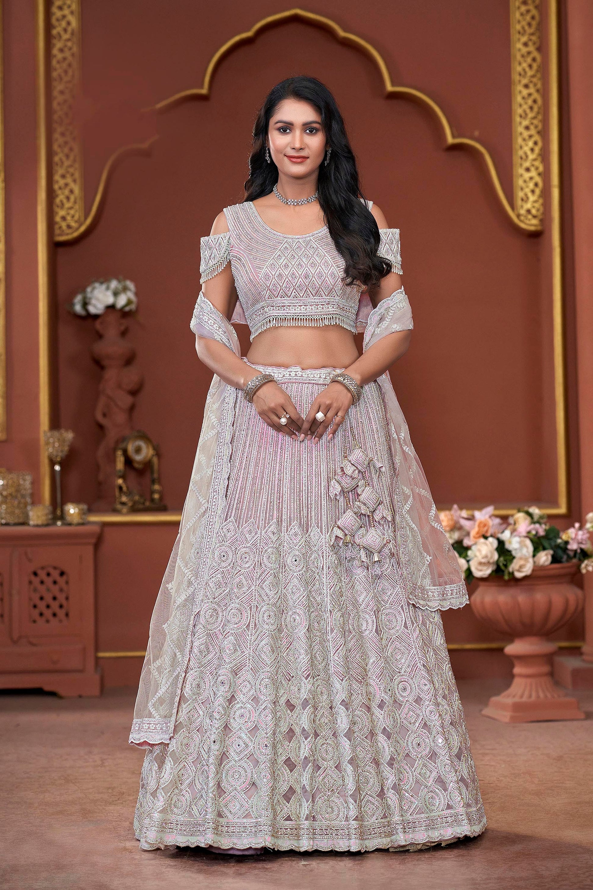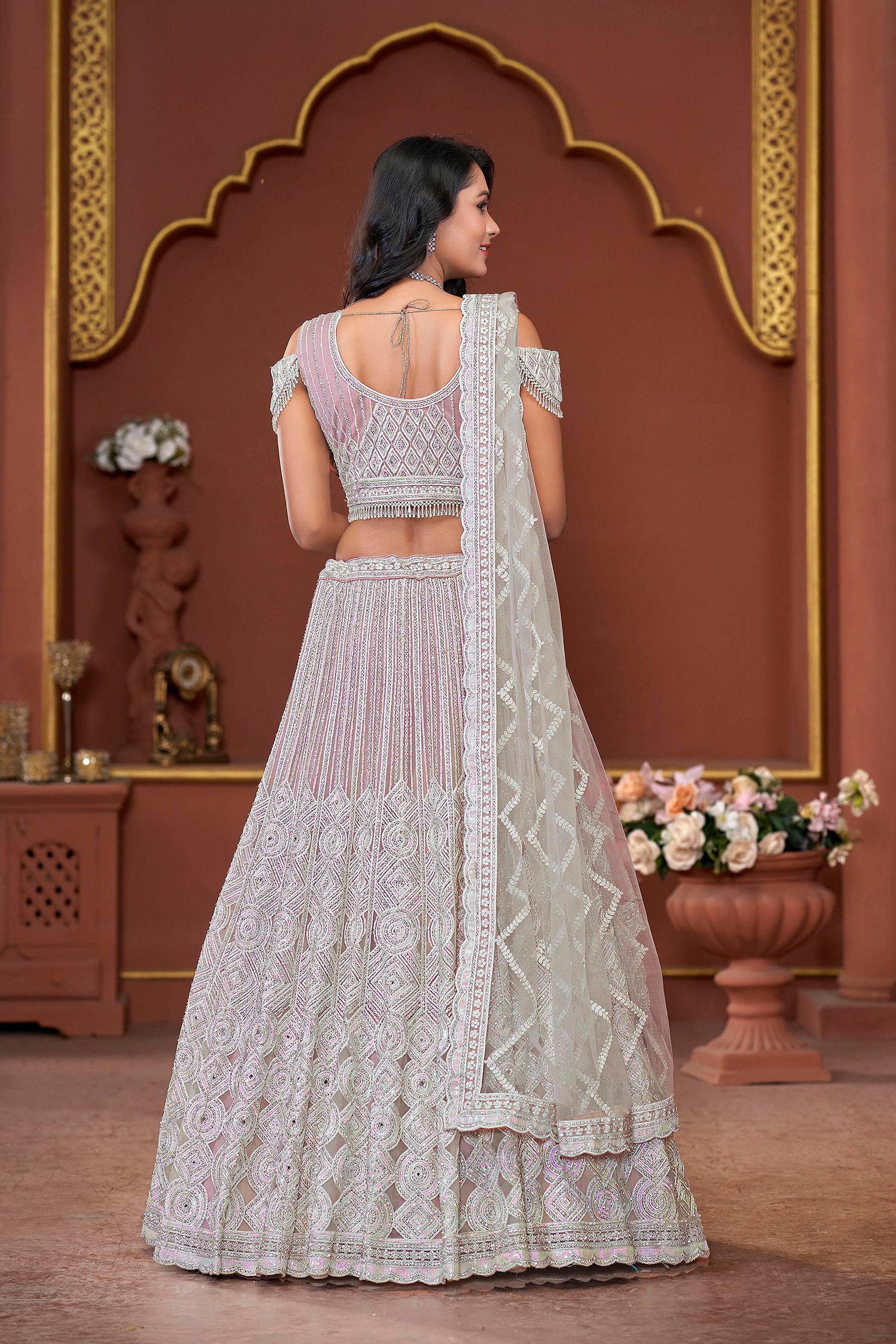 Pink Mirror & Zarkan Embroidery Net Bridesmaid Lehenga