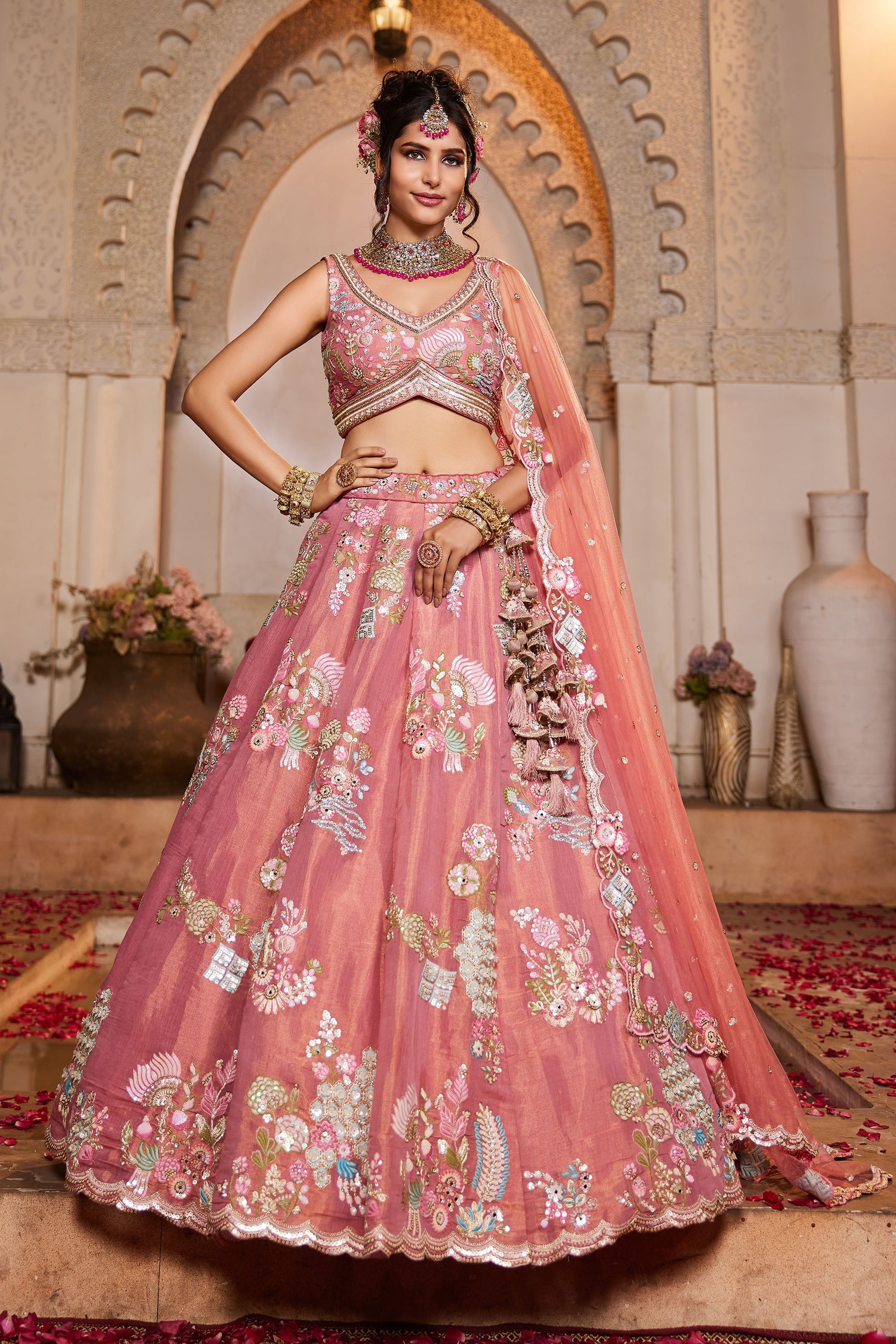 Pink Net Sequins embroidery Lehenga choli & Dupatta