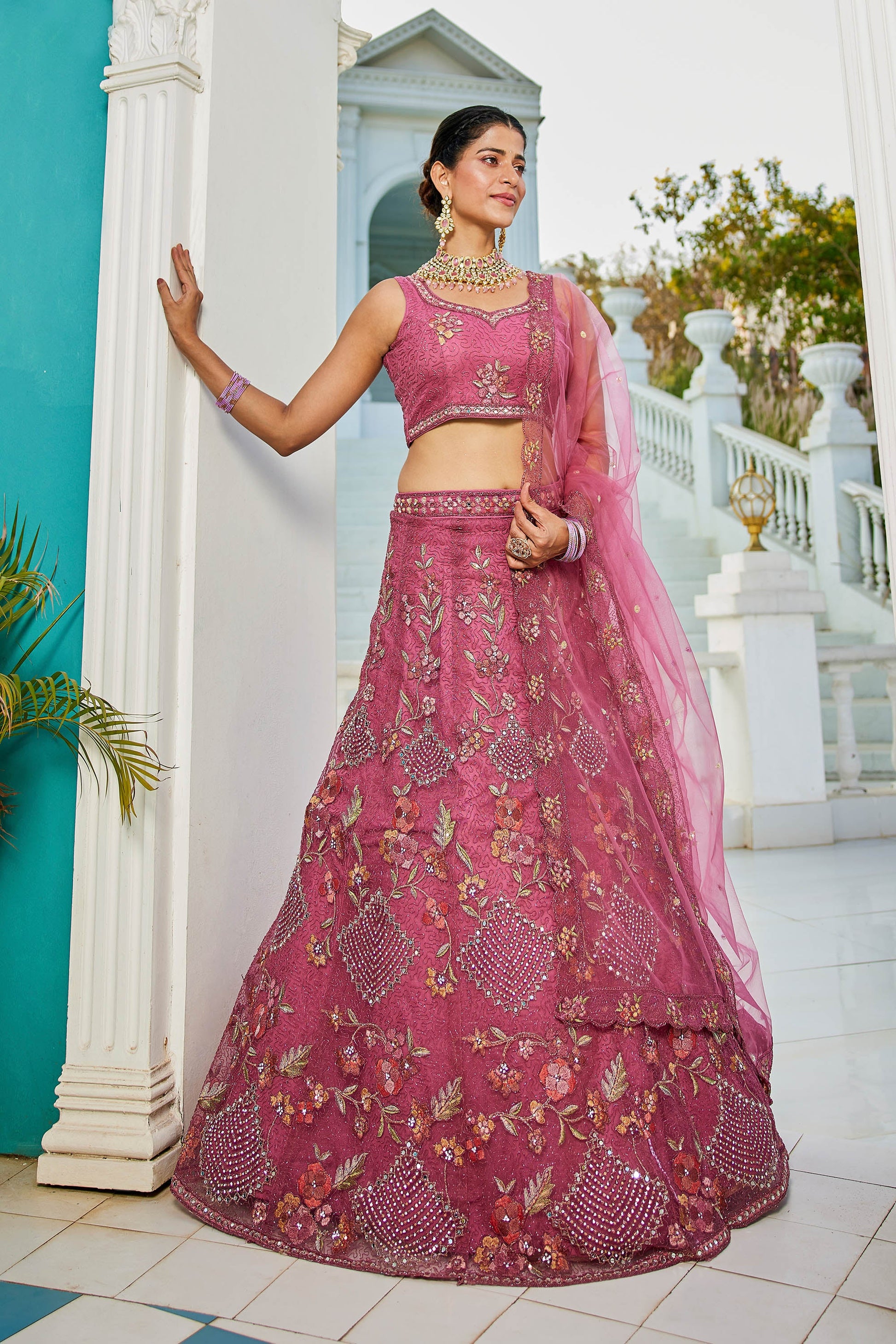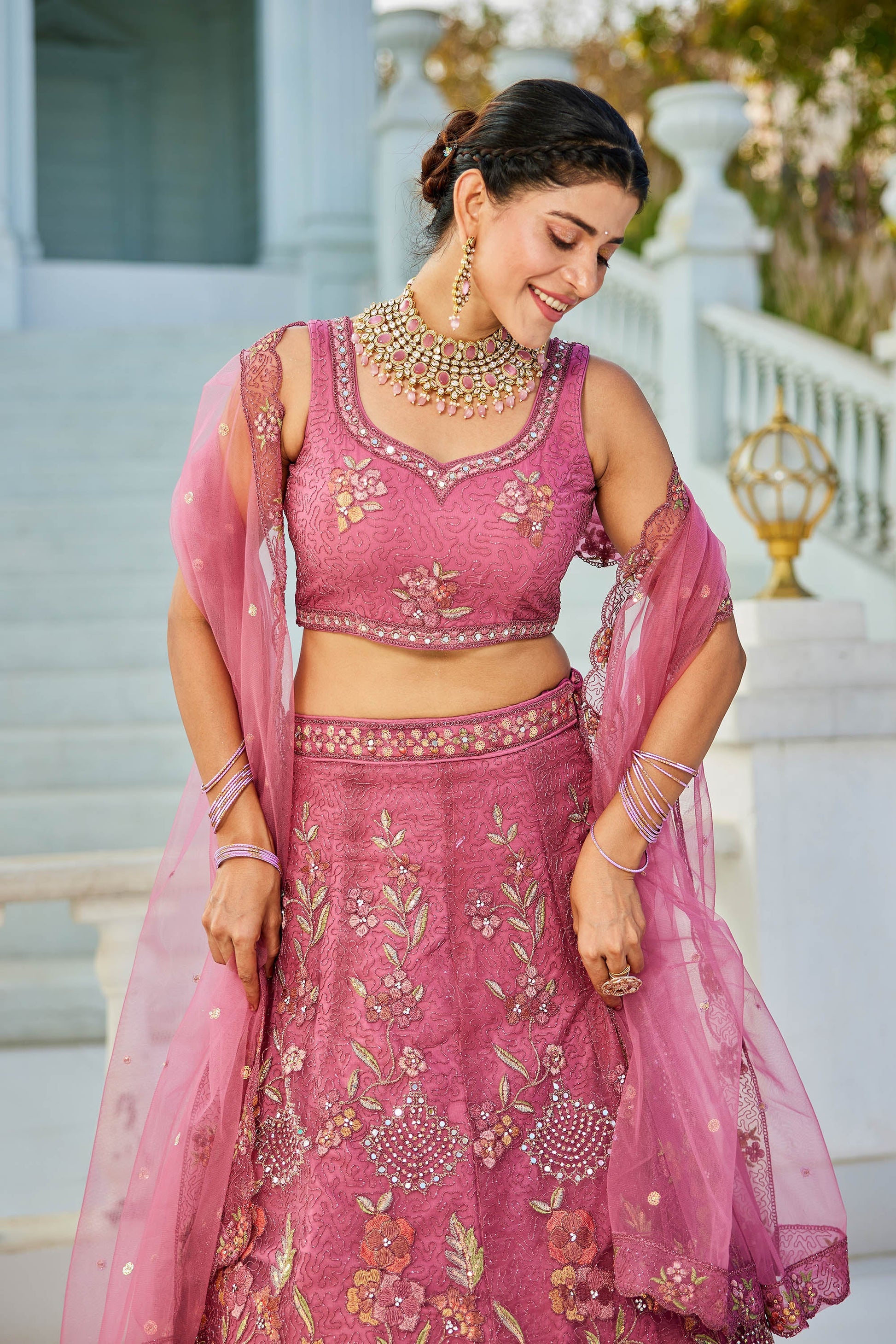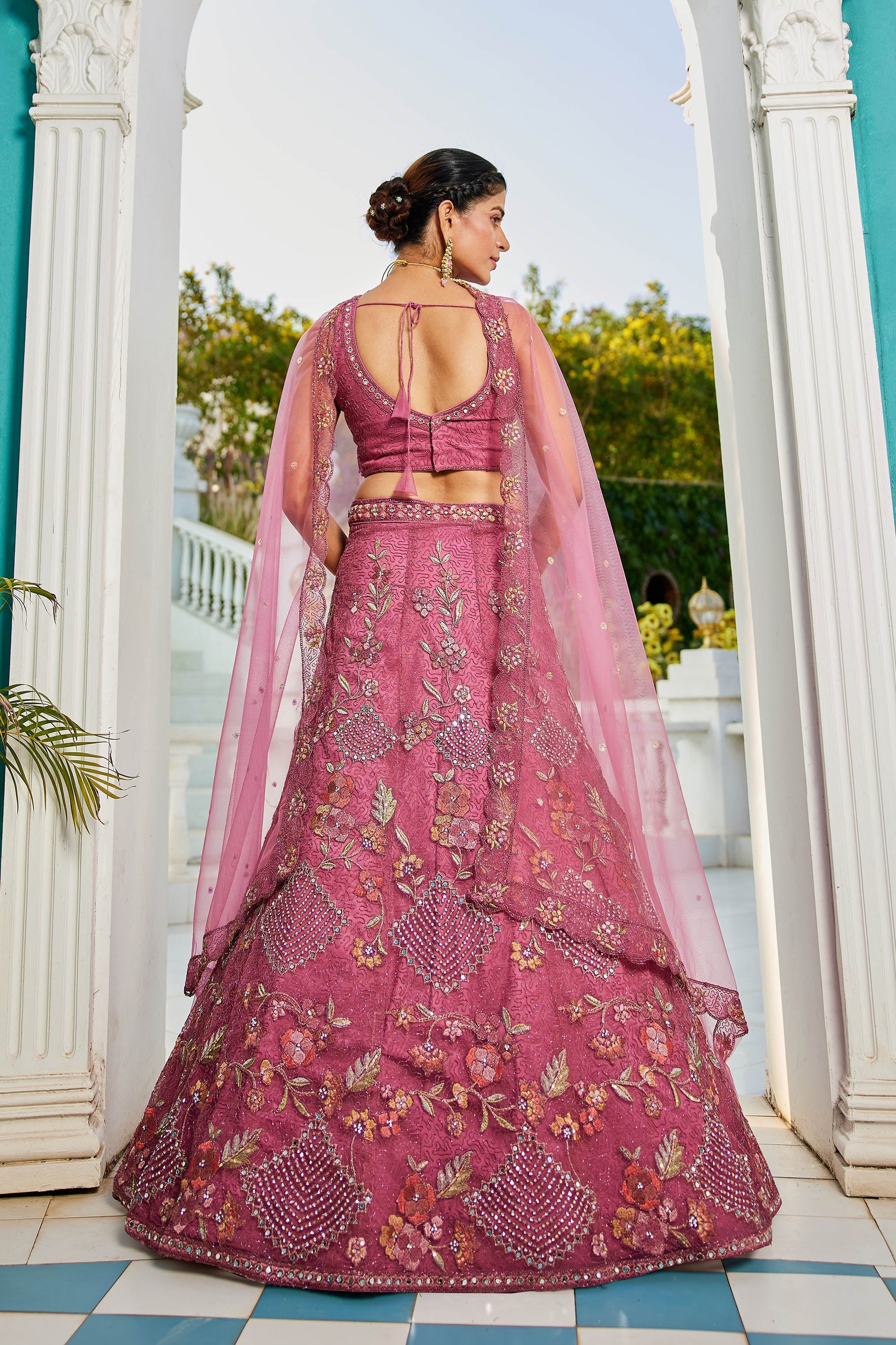 Pink net with Coding & Zarkan embroidery Lehenga choli & Dupatta