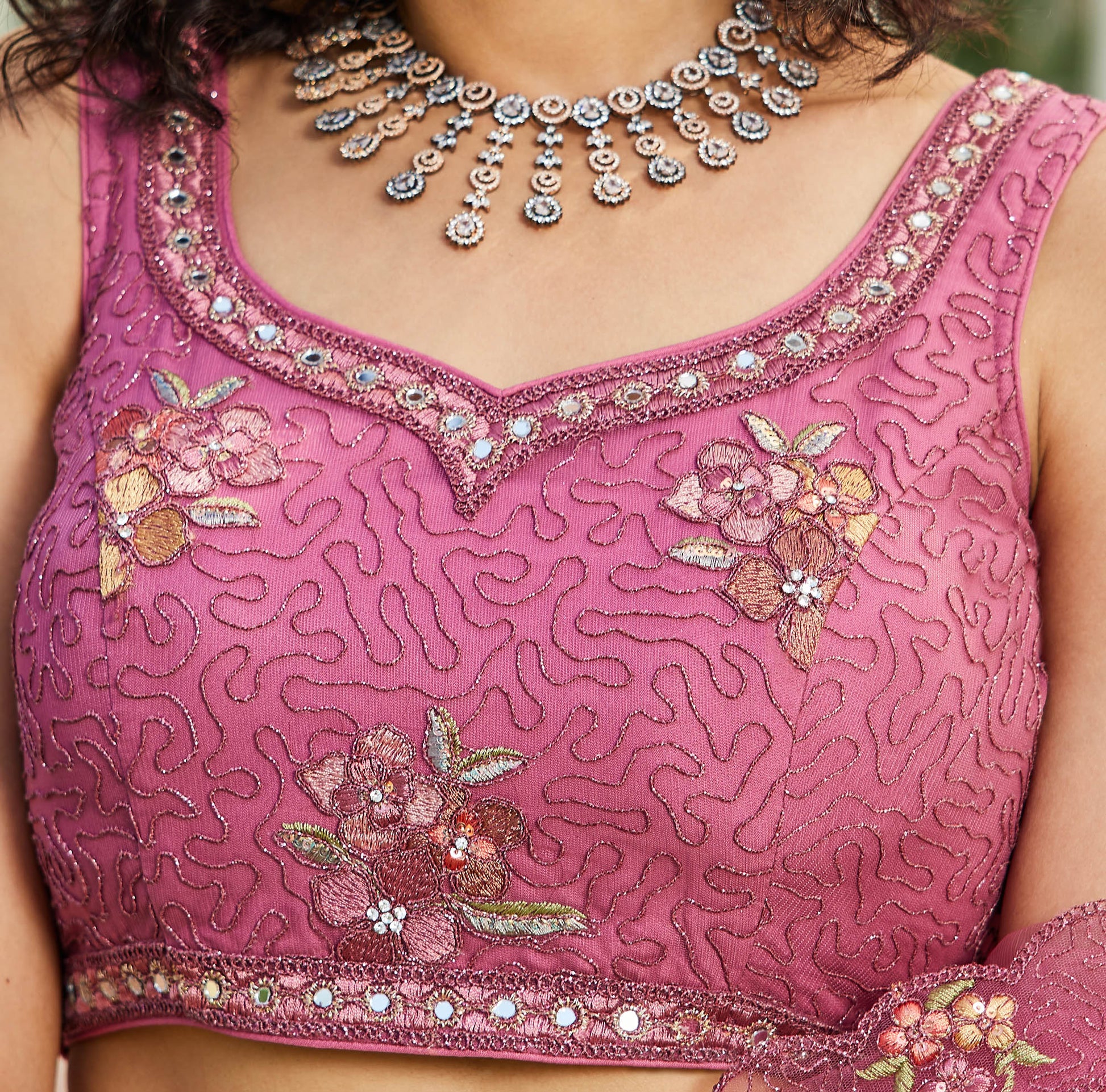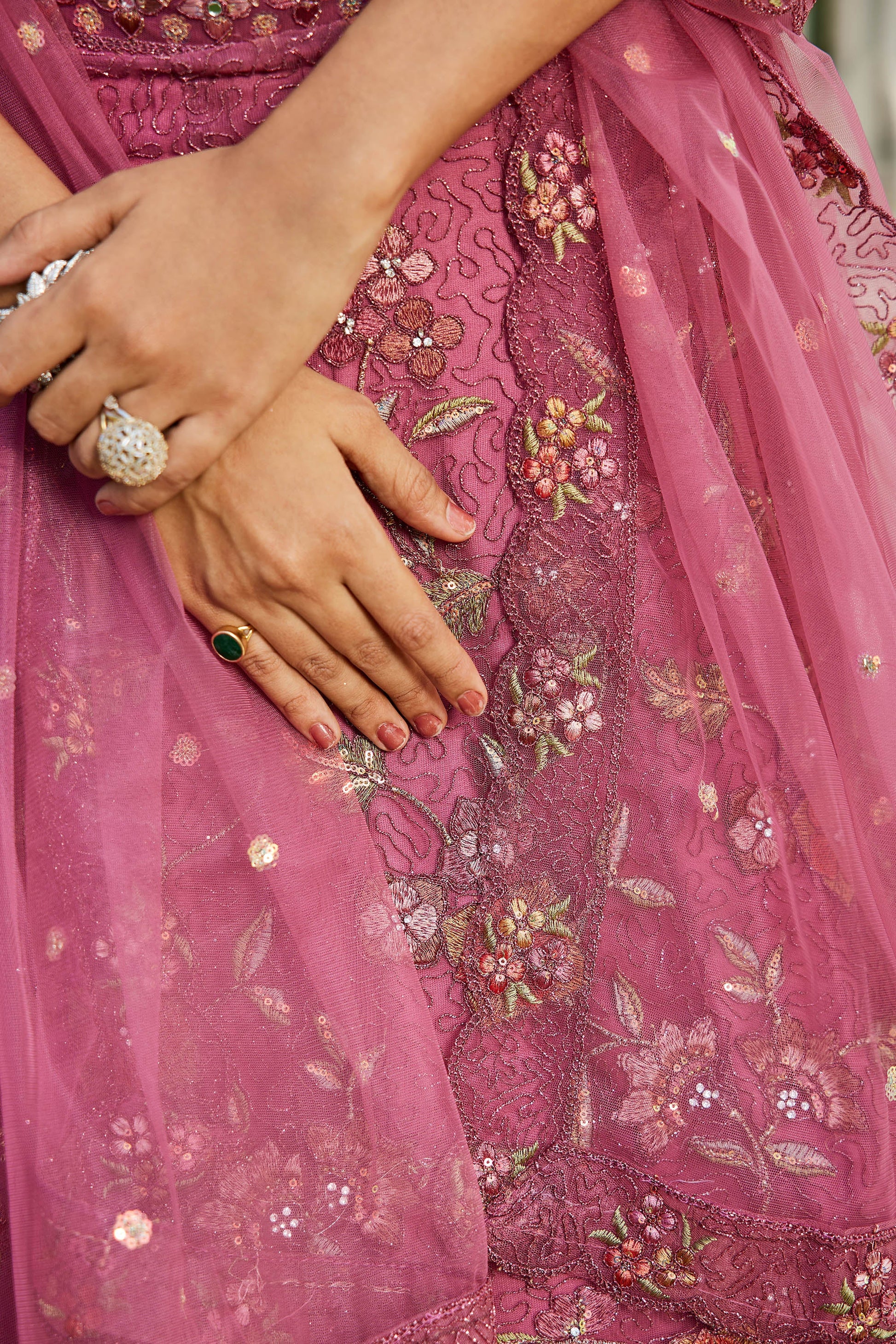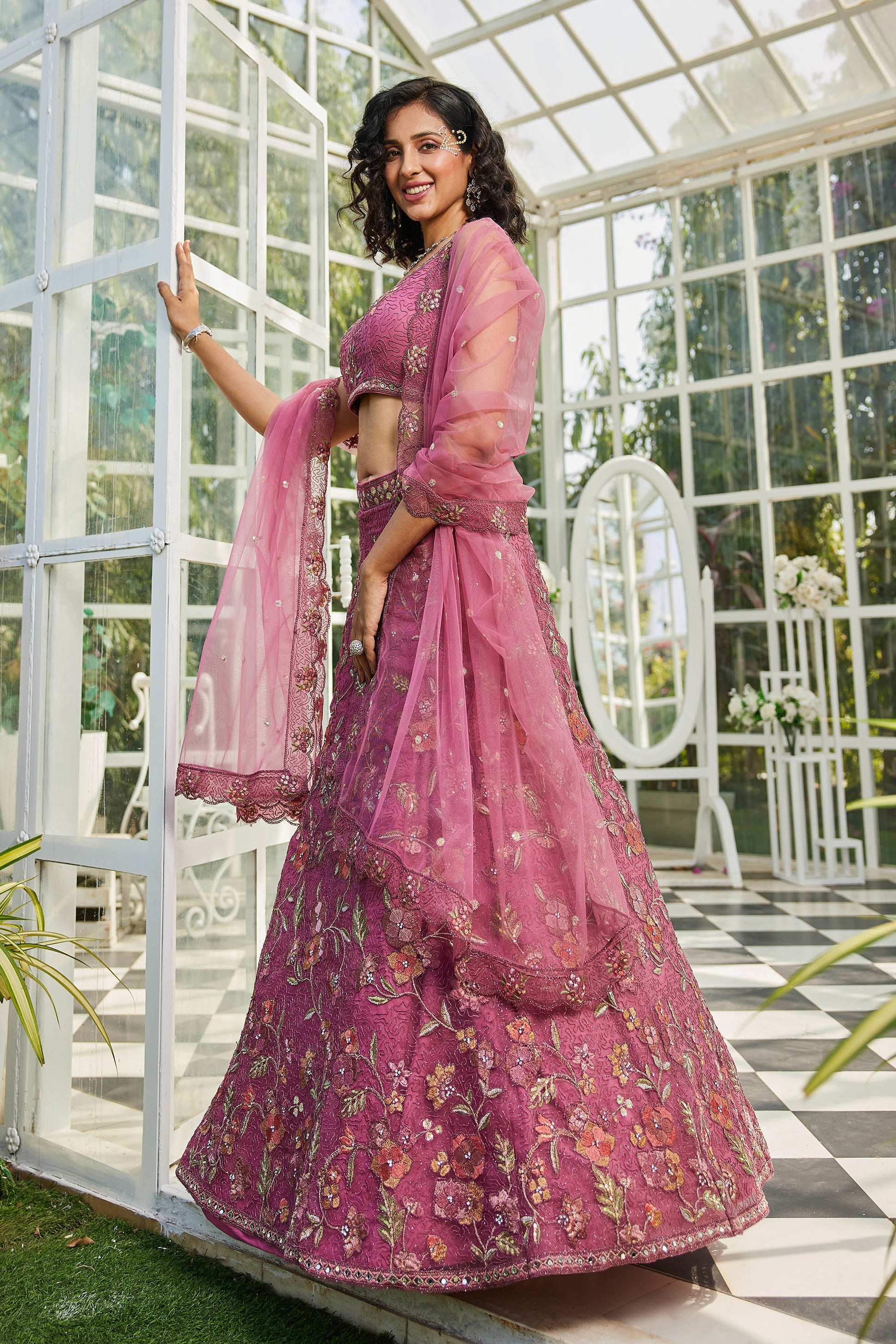 Pink net with Coding & Zarkan embroidery Lehenga choli & Dupatta