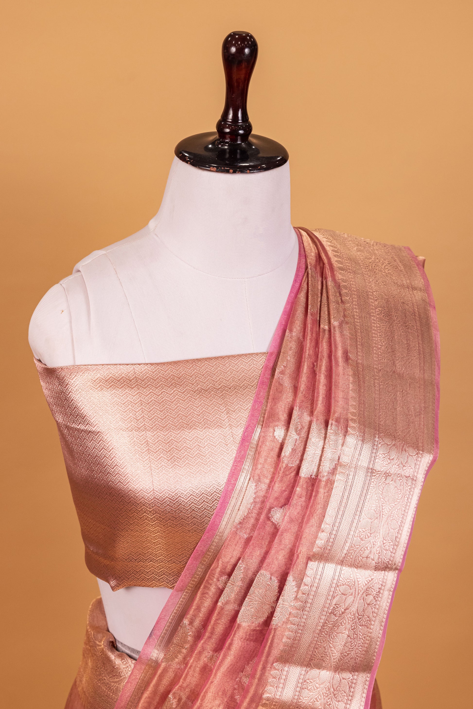 Description: Take a risk with our Pink Tissue Pure Silk Dyed Saree! This stunning saree features a beautiful Boota Tissue design, complete with a Banarasi Aachal and Border, all set in a bold pink tissue pure silk. Embrace the adventure of standing out with this unique and luxurious piece.