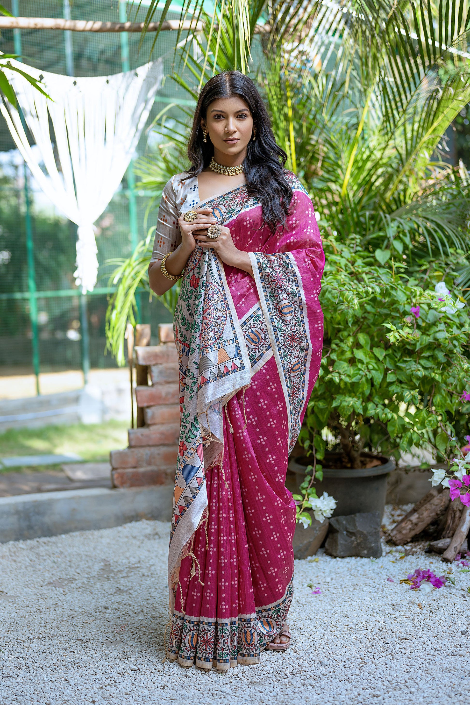 Pink Yogita Madhubani Soft Tussar Silk Zari Saree