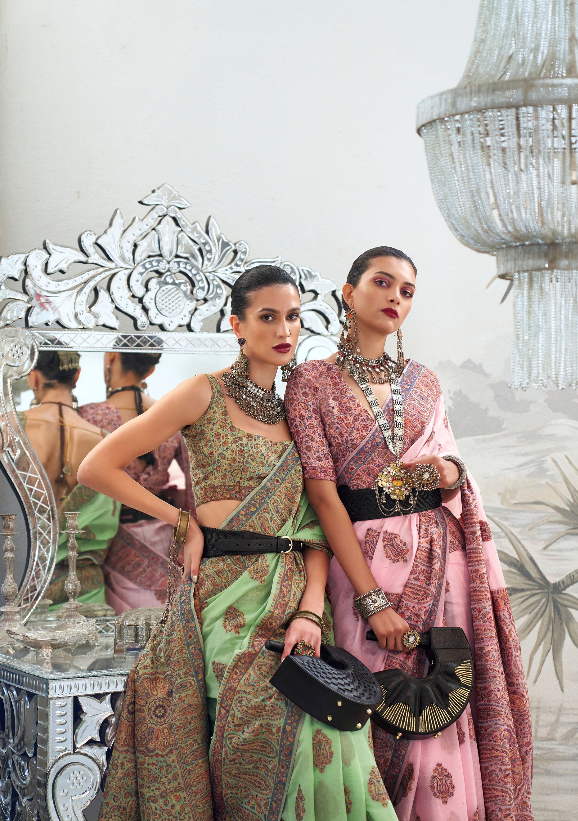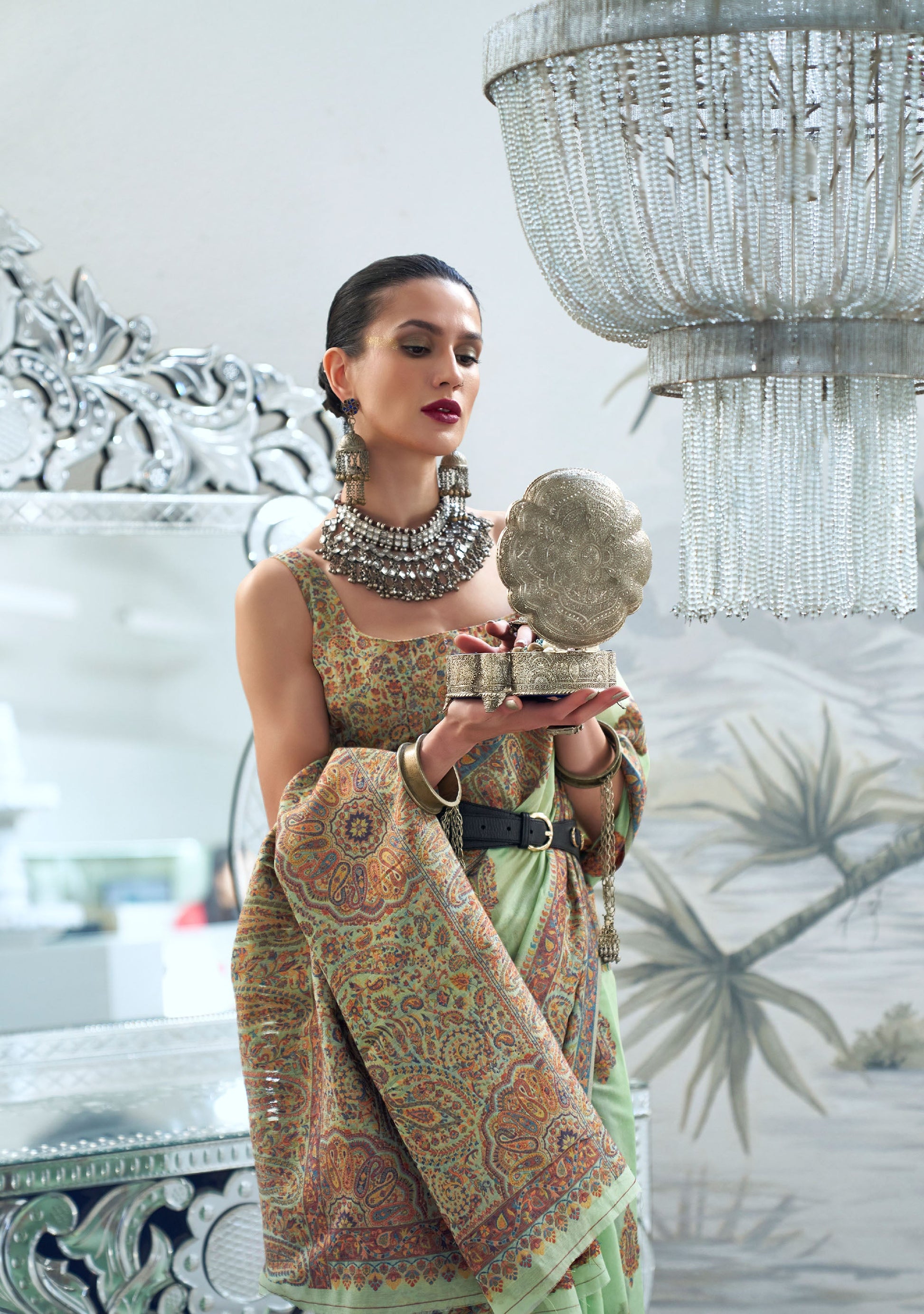 Pista Green Kqaalib Kashmiri Handloom saree