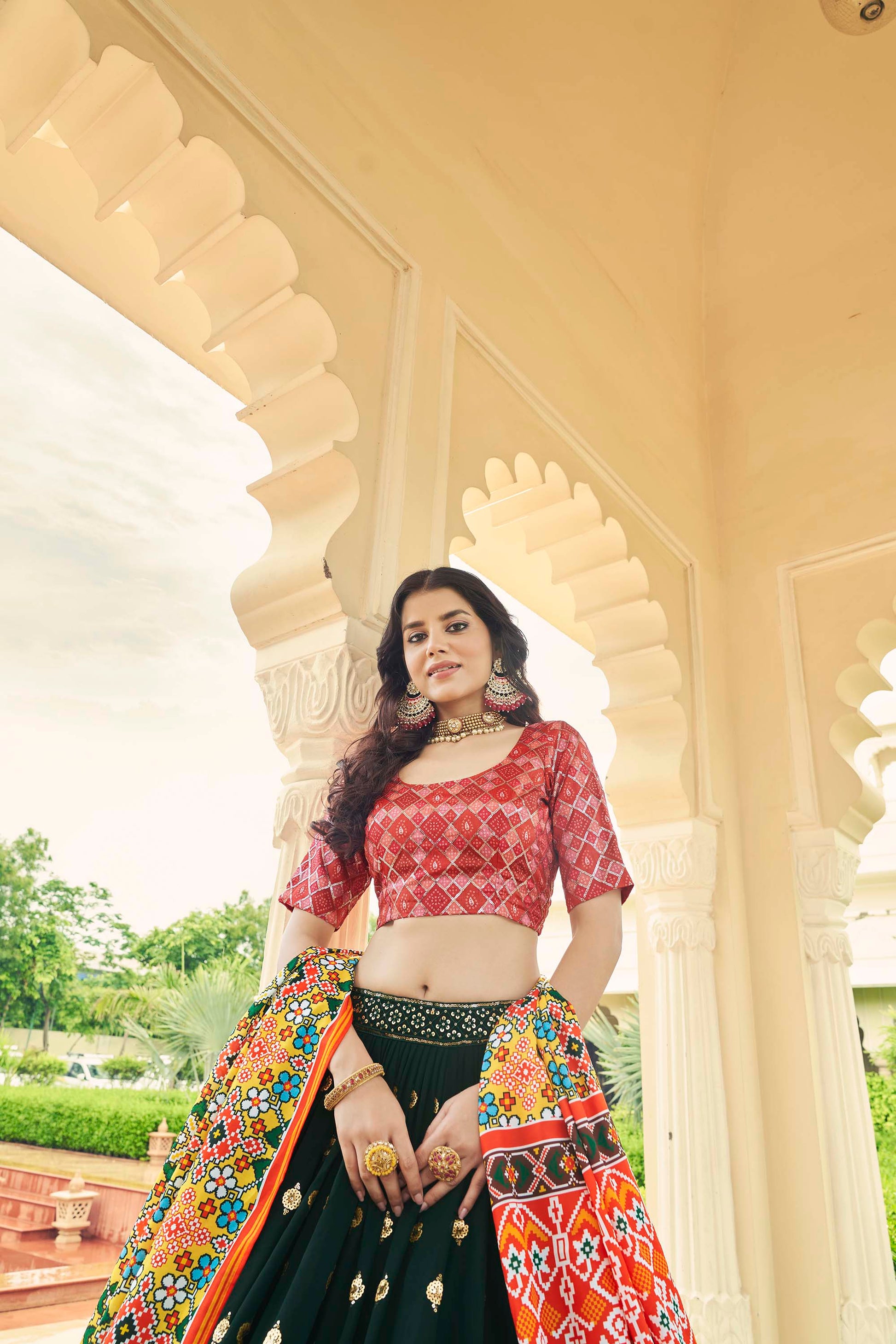 Looking for something a little out of the ordinary? We've got just the thing! This Green Georgette Embroidered Lehenga is perfect for those who want to make a statement. With its beautiful sequins embroidery and vibrant green color, this lehenga is sure to make you the center of attention. A bridesmaid would look gorgeous in this outfit. It is suitable for any occasion, such as wedding receptions, engagement parties, and sangeets. So don't wait any longer, add this Green Georgette Embroidered Lehenga to your wardrobe today!