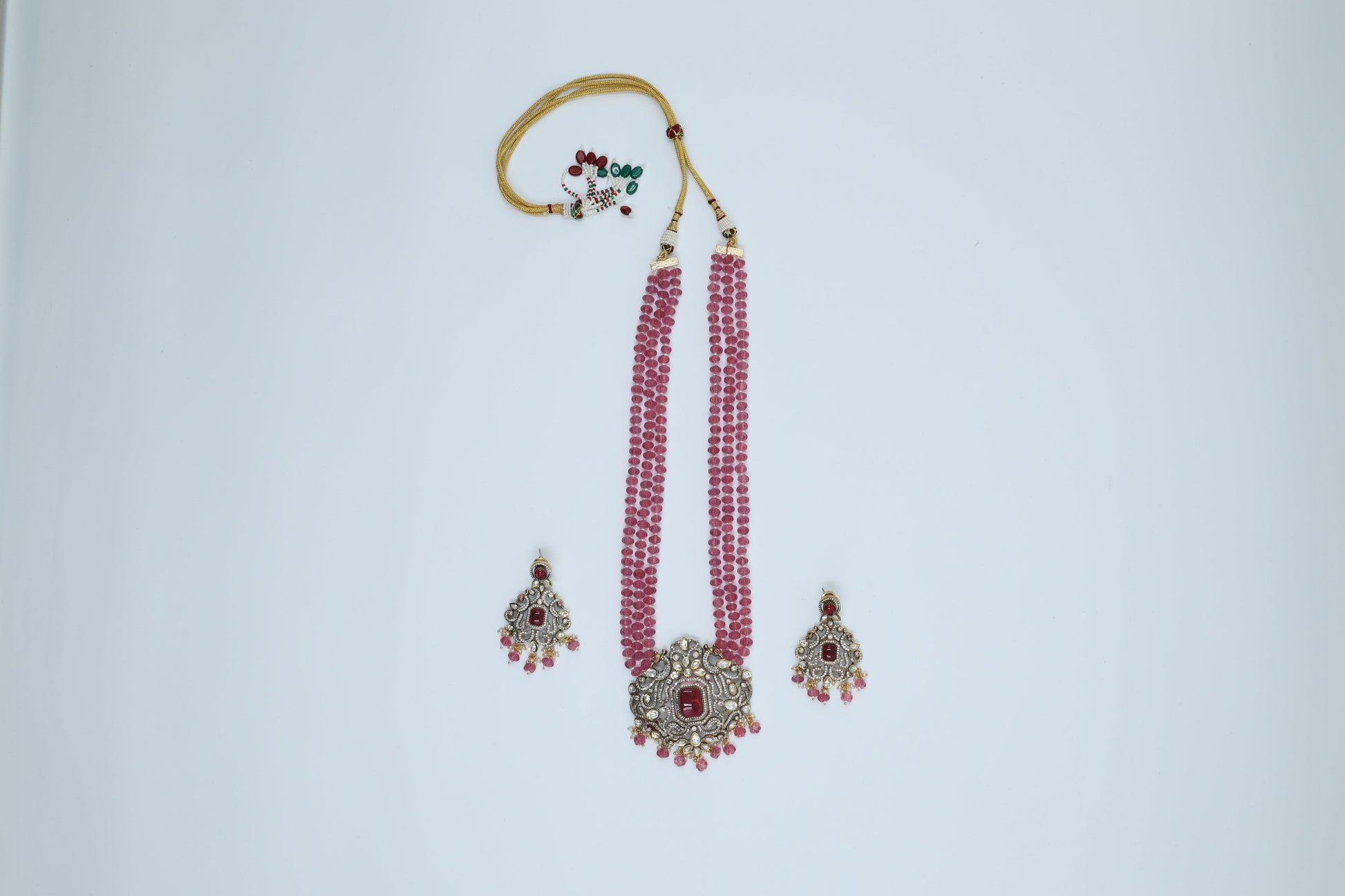 Pretty in Pink Rhodium Polished Kundan Victorian Long Set