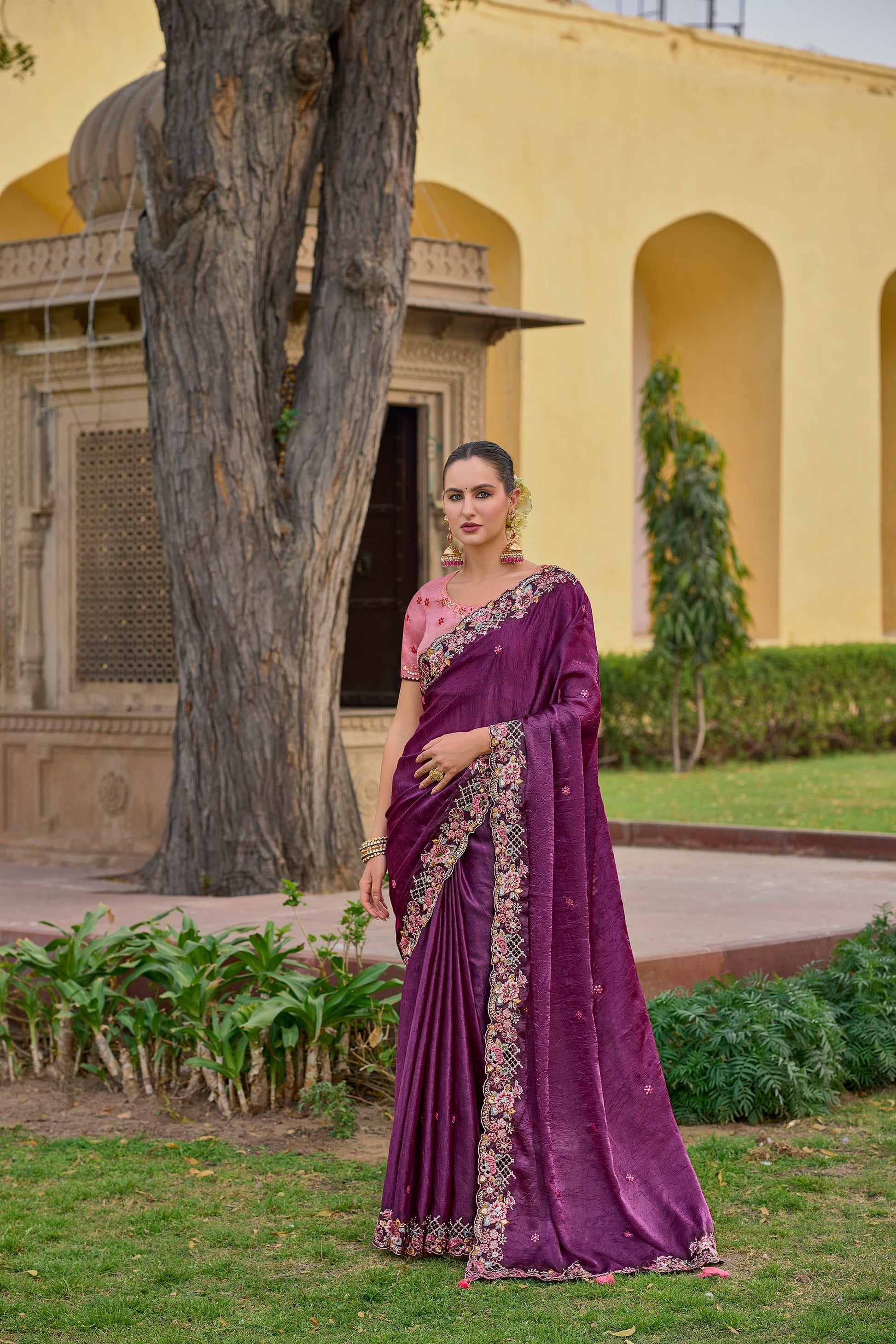 Purple Art Silk With Stone & Cut Work Festive Saree