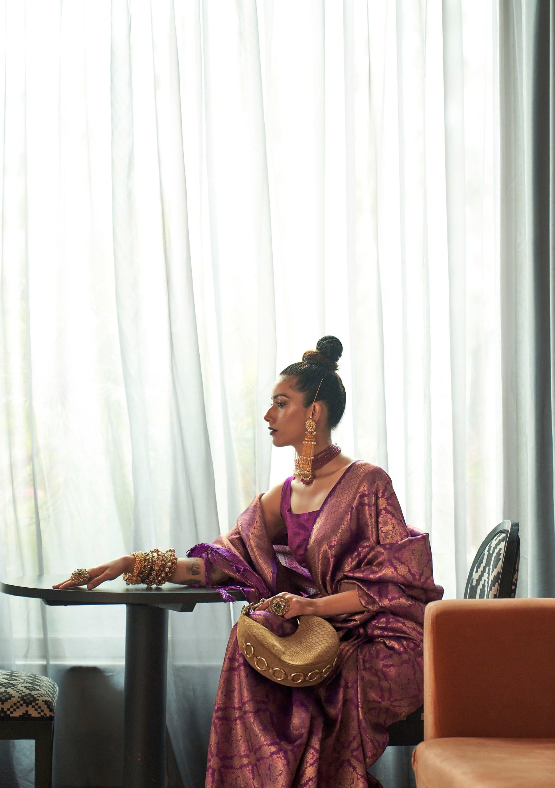 Looking for something a little out of the ordinary? We've got just the thing! This Purple Color Kanjivaram Silk Saree is perfect for those who want to make a statement. A wedding guest would look gorgeous in this outfit. It is suitable for any occasion, such as wedding receptions, engagement parties, and sangeets. So don't wait any longer, add this Purple Color Kanjivaram Silk Saree to your wardrobe today!