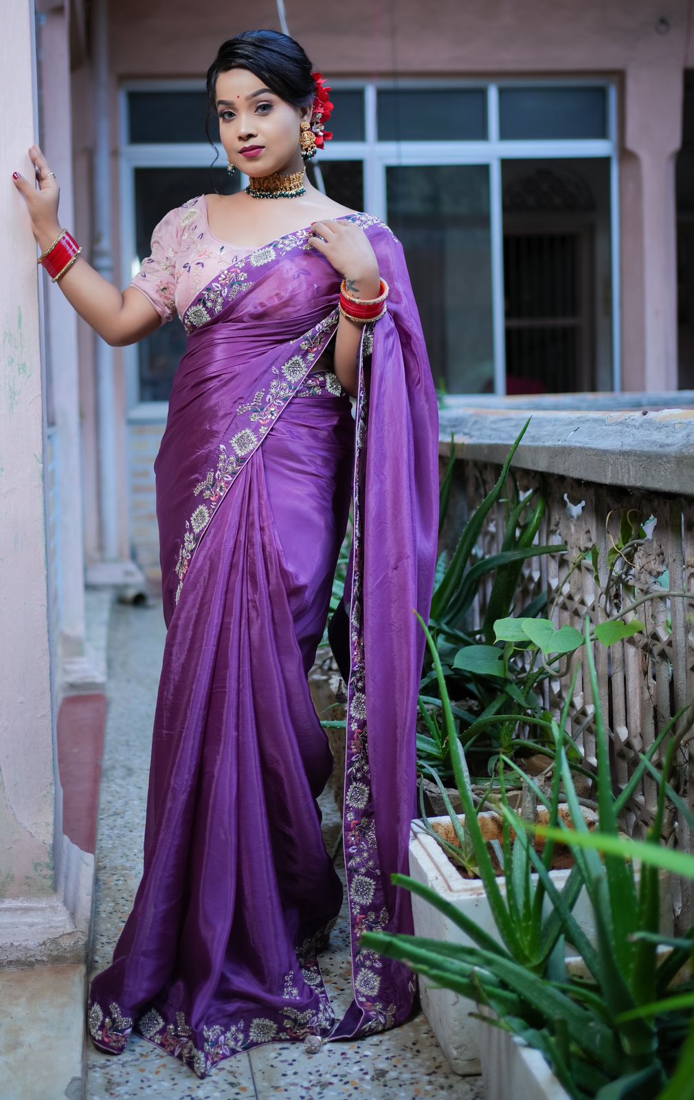 It is a pure crepe saree with hand embroidery . Having latest mirror work.