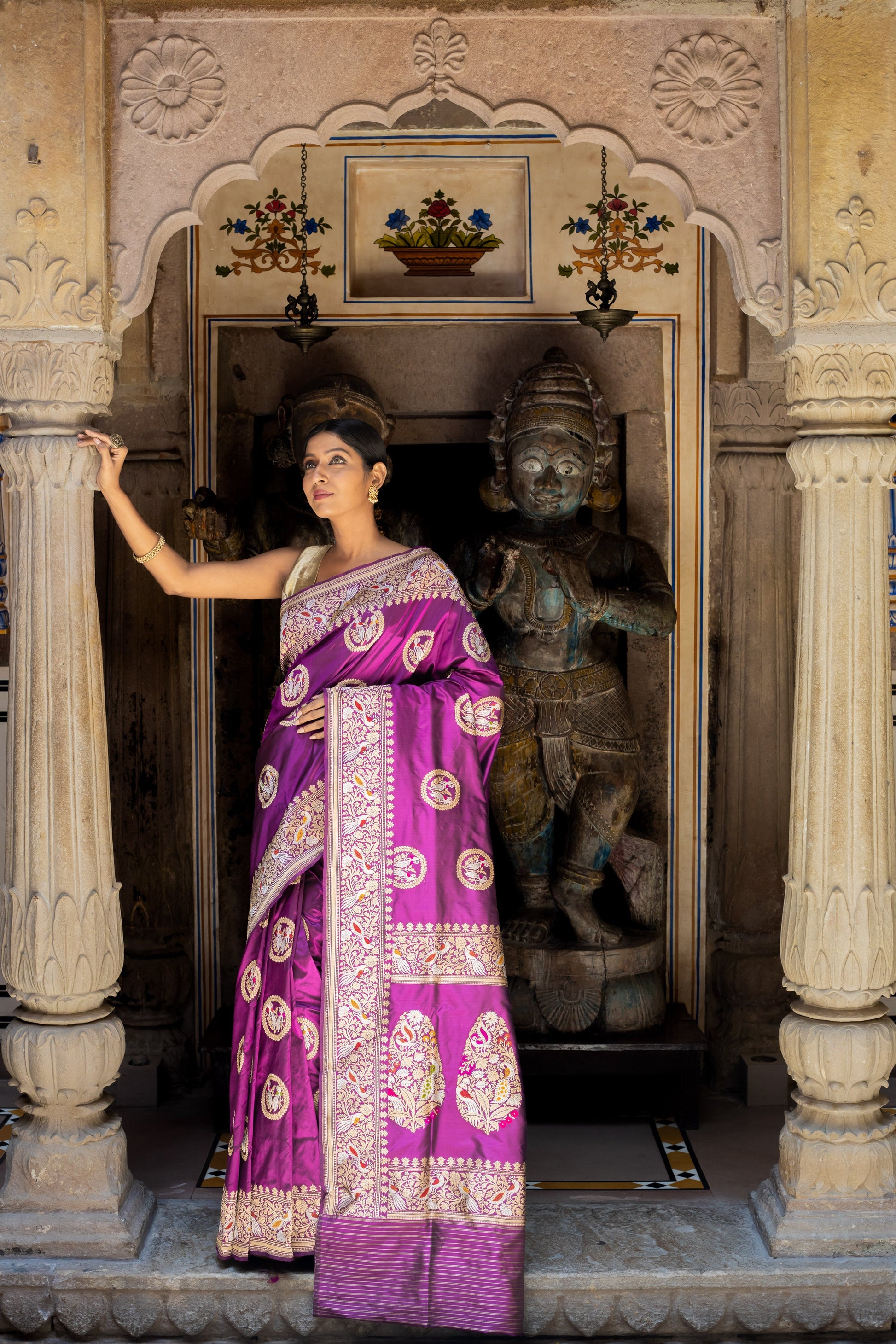 The Purple Handwoven Kadwa Katan Silk Saree is a timeless and elegant choice for those who appreciate the beauty of tradition and sustainable fashion. Its rich colors and intricate motifs make it a statement piece for special occasions and celebrations.