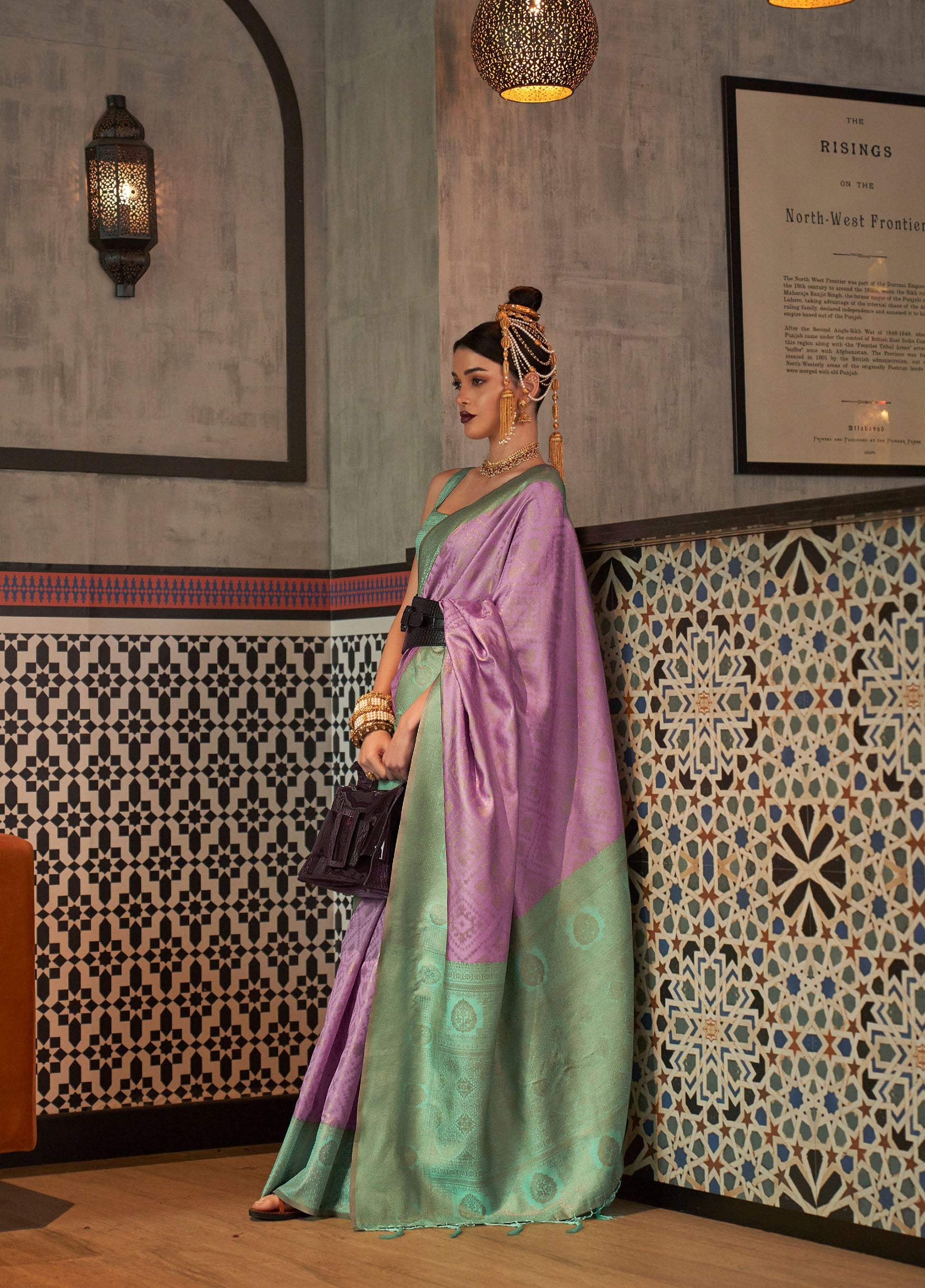 Purple Kaizaa Silk Zari Base Chaap Handloom Saree
