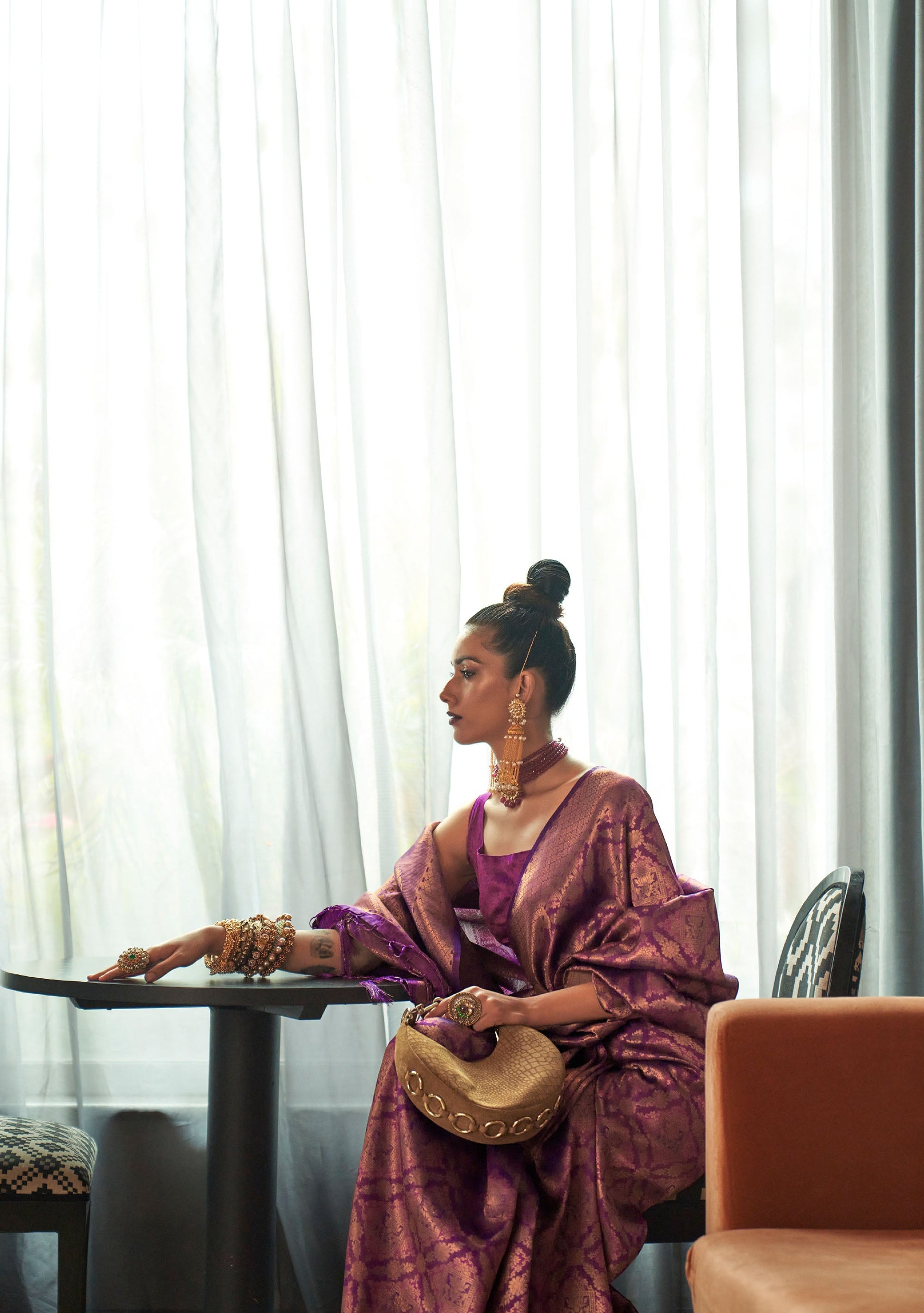 Purple Kanvi Royals Two Tone Handloom Weaving Silk Saree