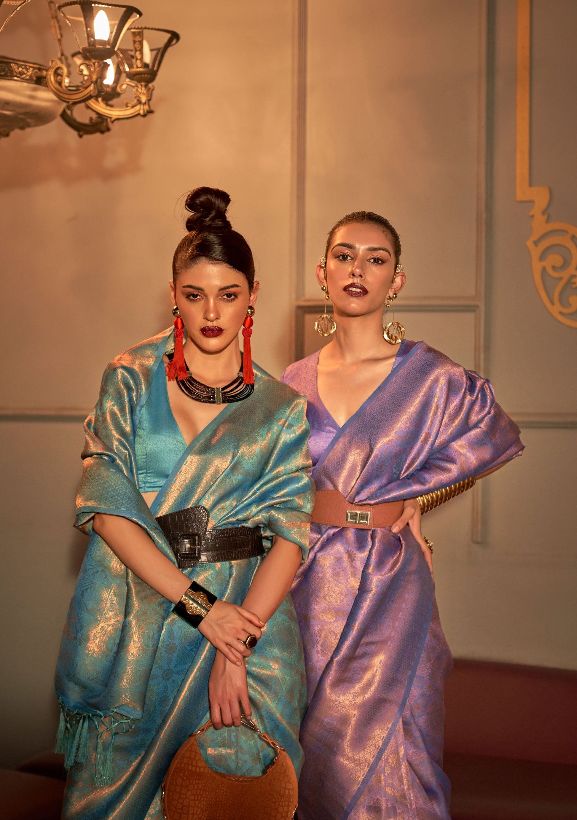 Purple Kanvi Senses Two Tone Handloom Weaving Silk Saree