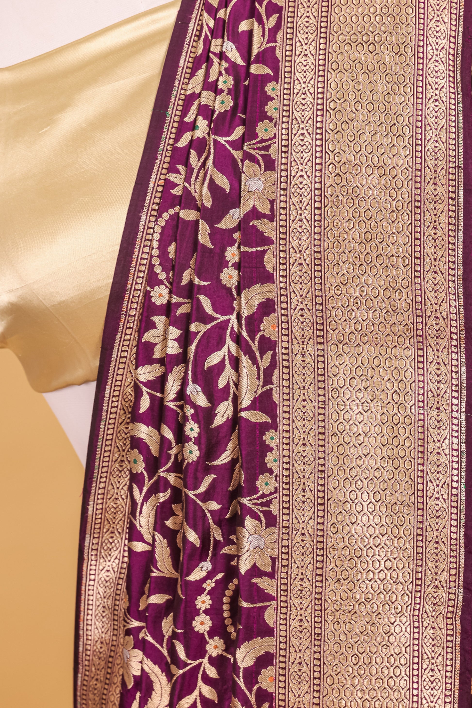 Product Description: Indulge in the luxurious elegance of our Purple Katan Pure Silk Kadhwa Saree. Crafted from pure silk, this saree features a beautiful Jangla pattern that adds a touch of sophistication to any occasion. Elevate your wardrobe and make a statement with this exquisite piece.