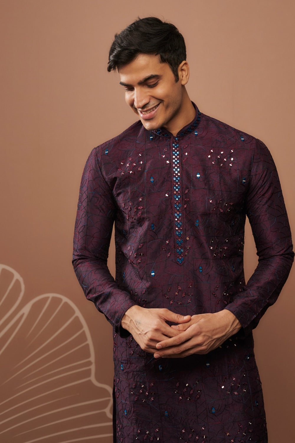 Purple mirror embroidered silk kurta set
