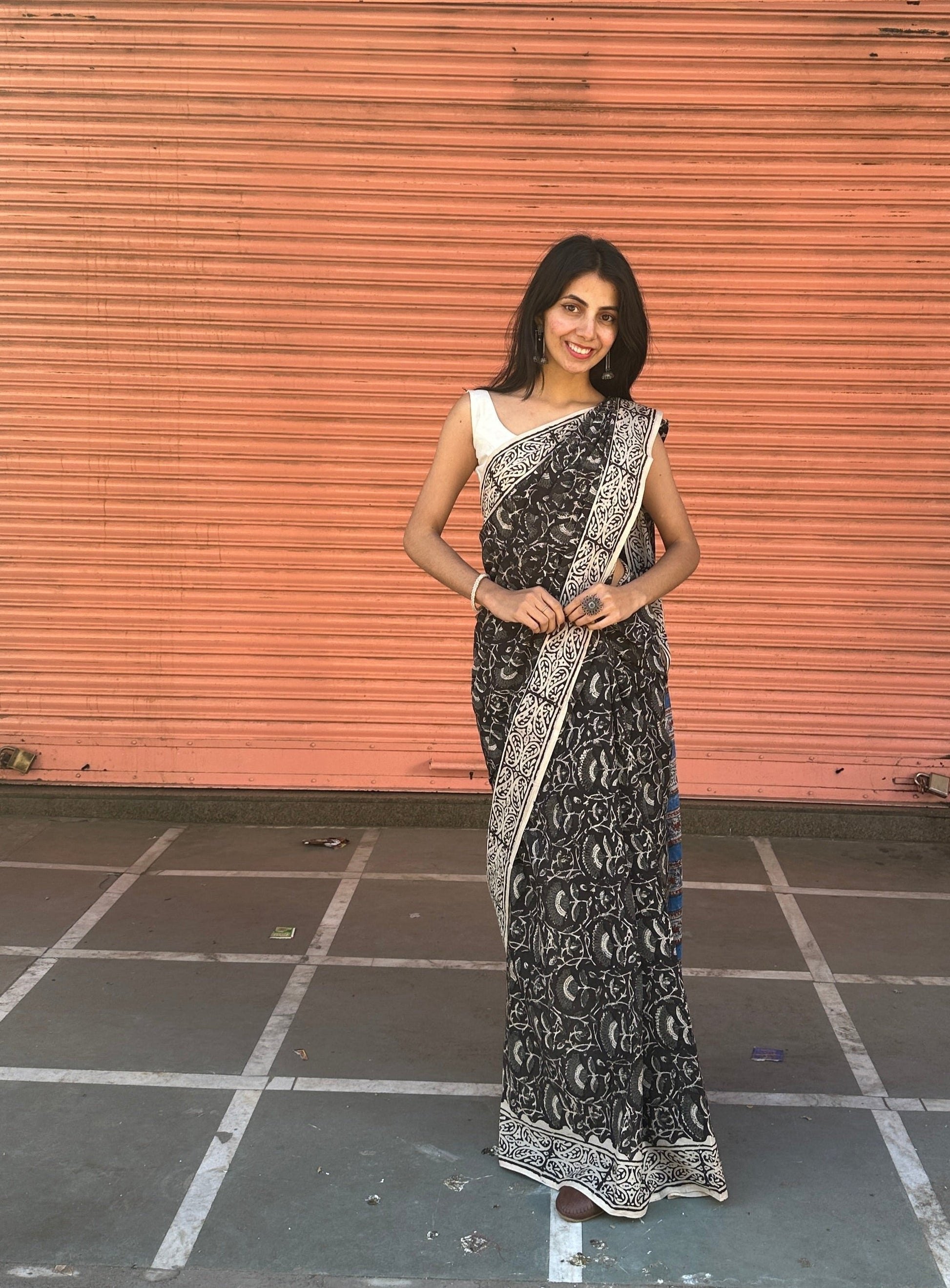 Raina - A Night of Elegance and Mystery - Handblock Print Natural Dyed - Mulmul Cotton Saree