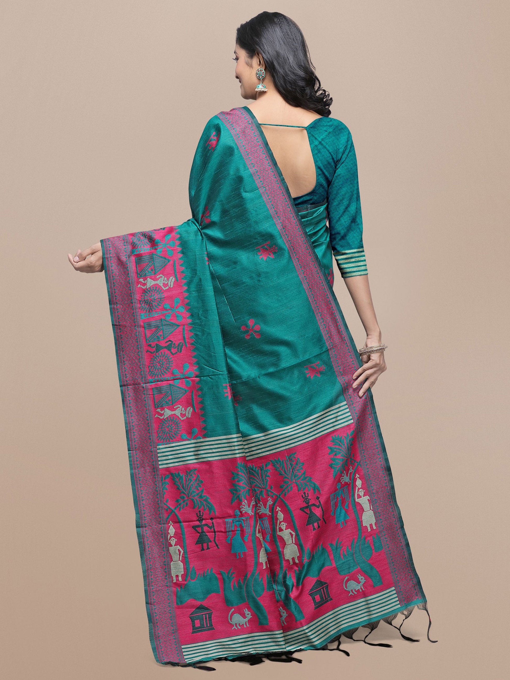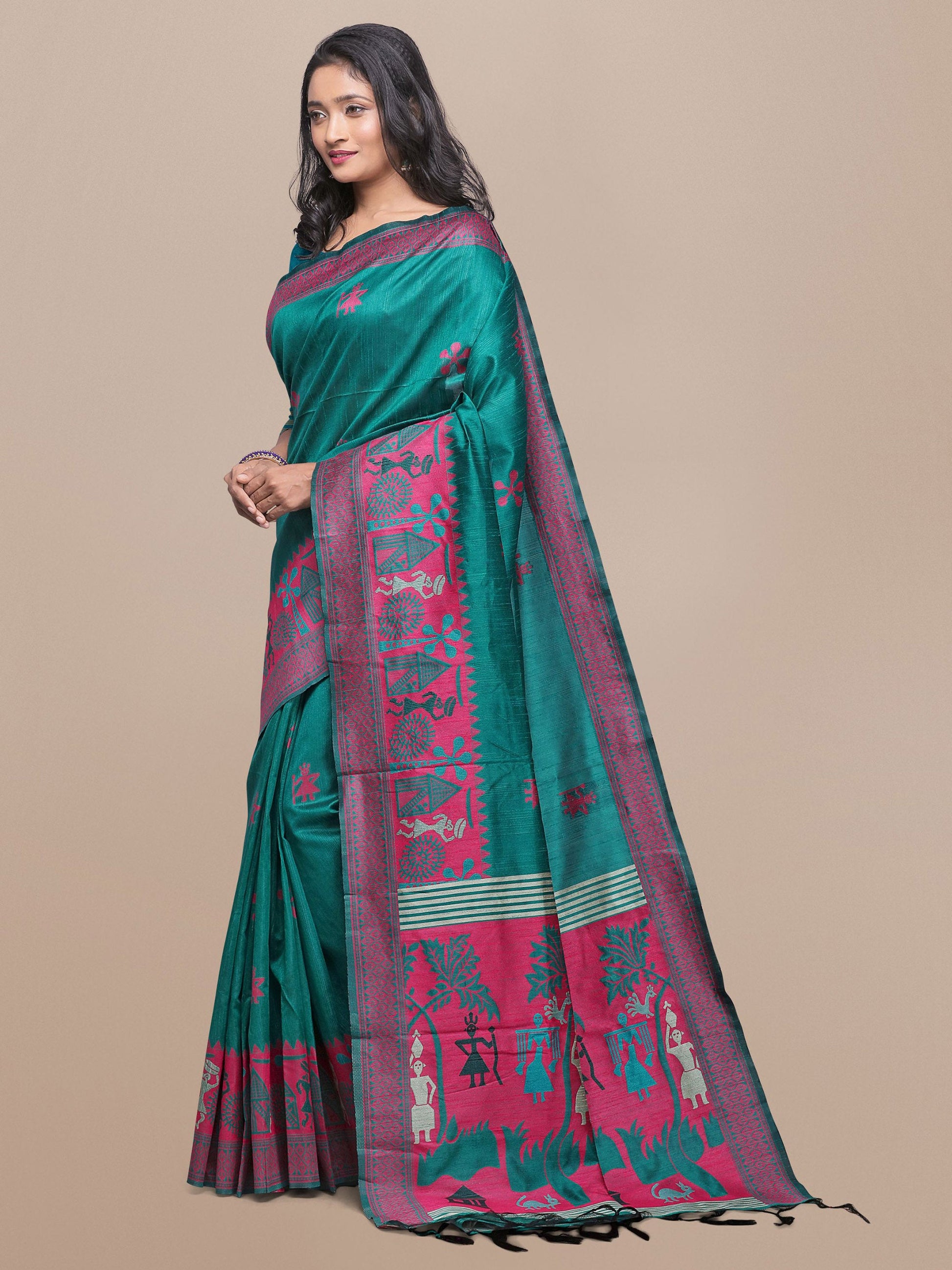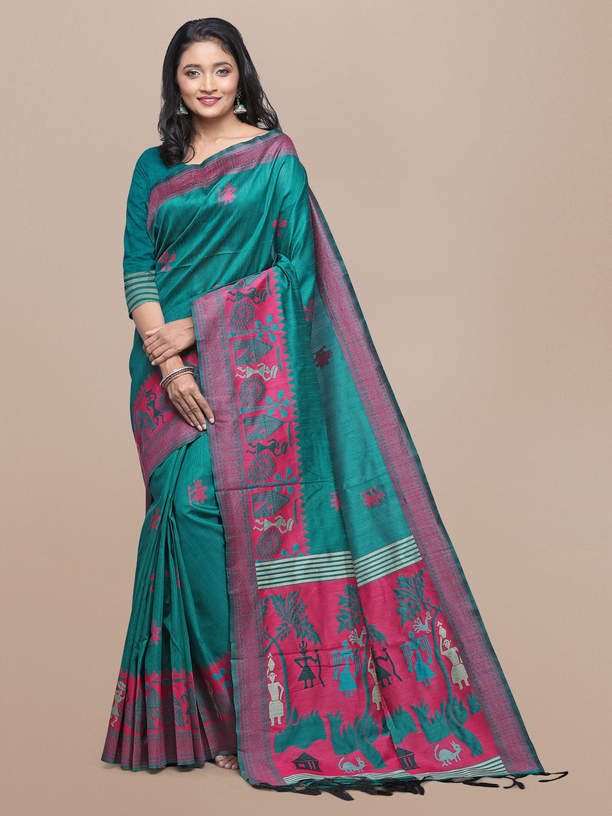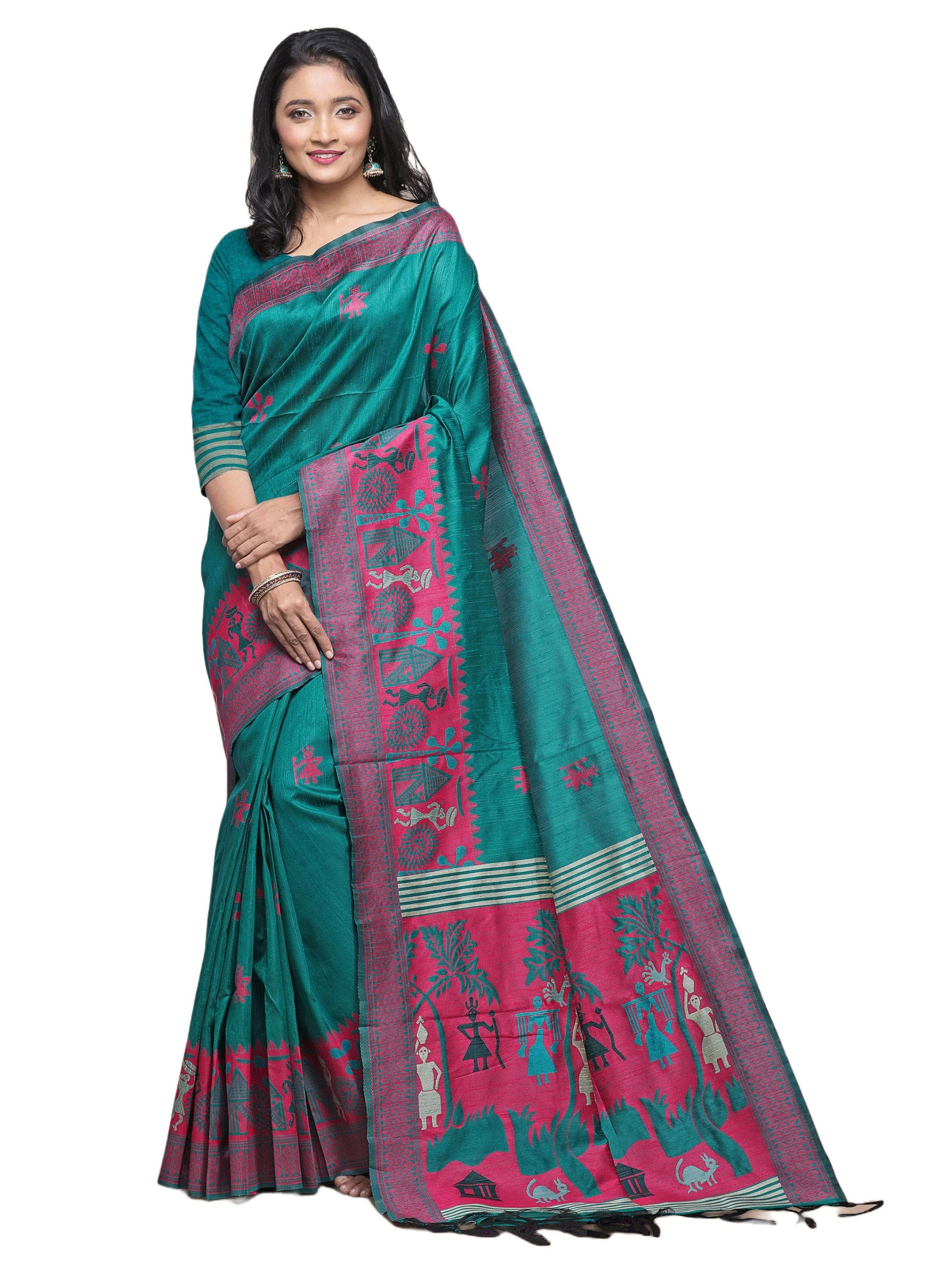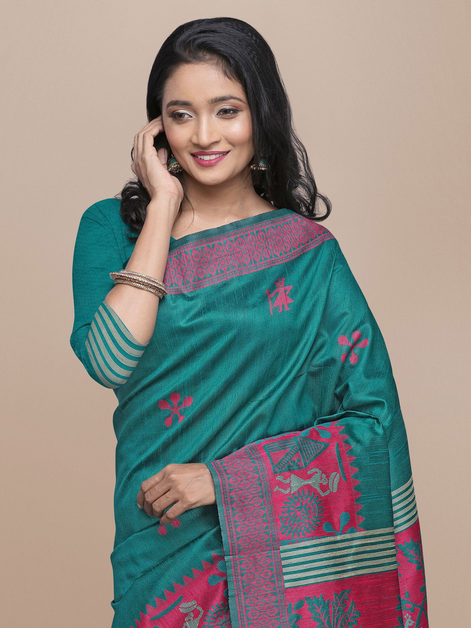 Rama Green Handloom Kalamkari woven Raw Silk saree