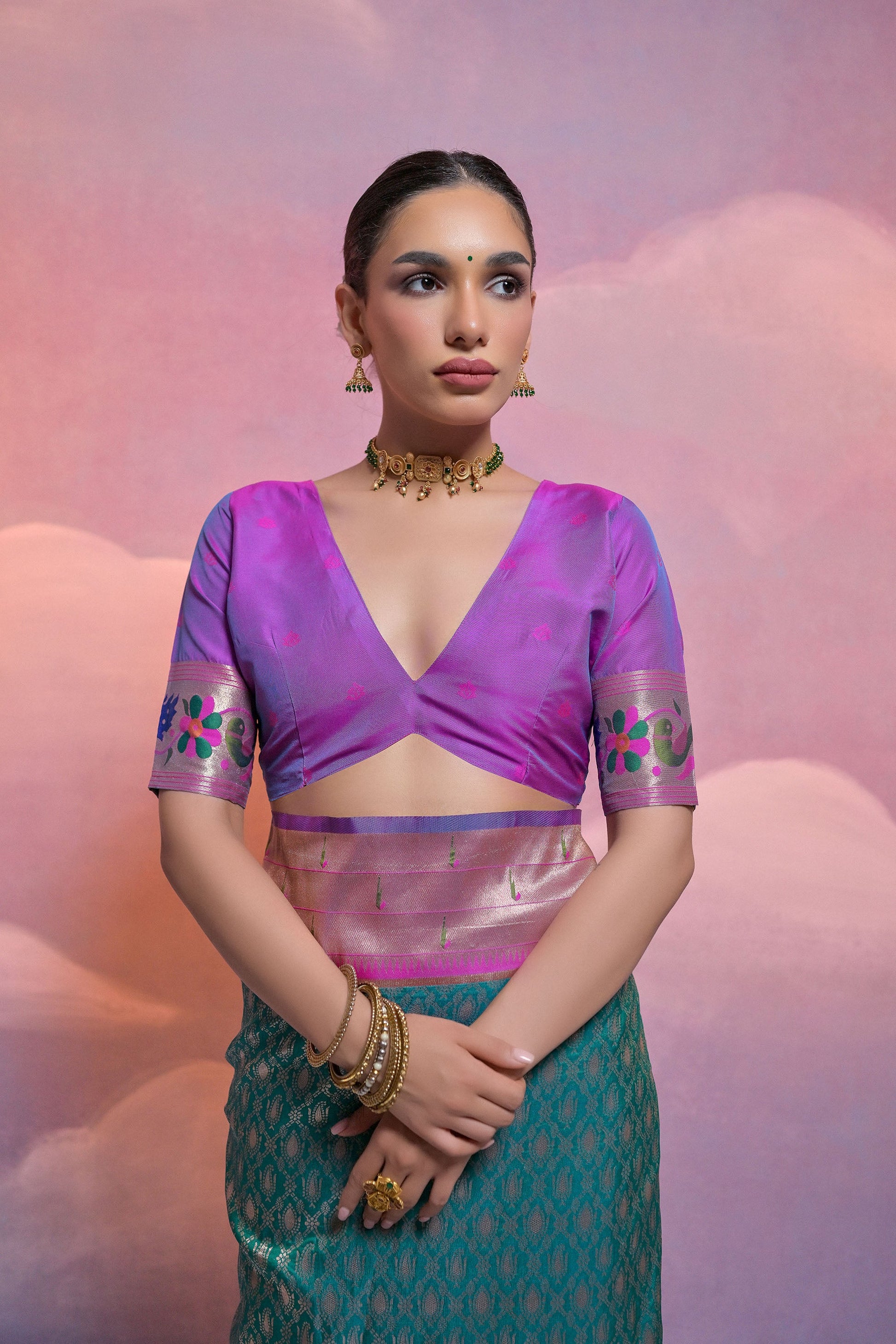 Rama Paithani Silk Meenakari Zari Woven Saree