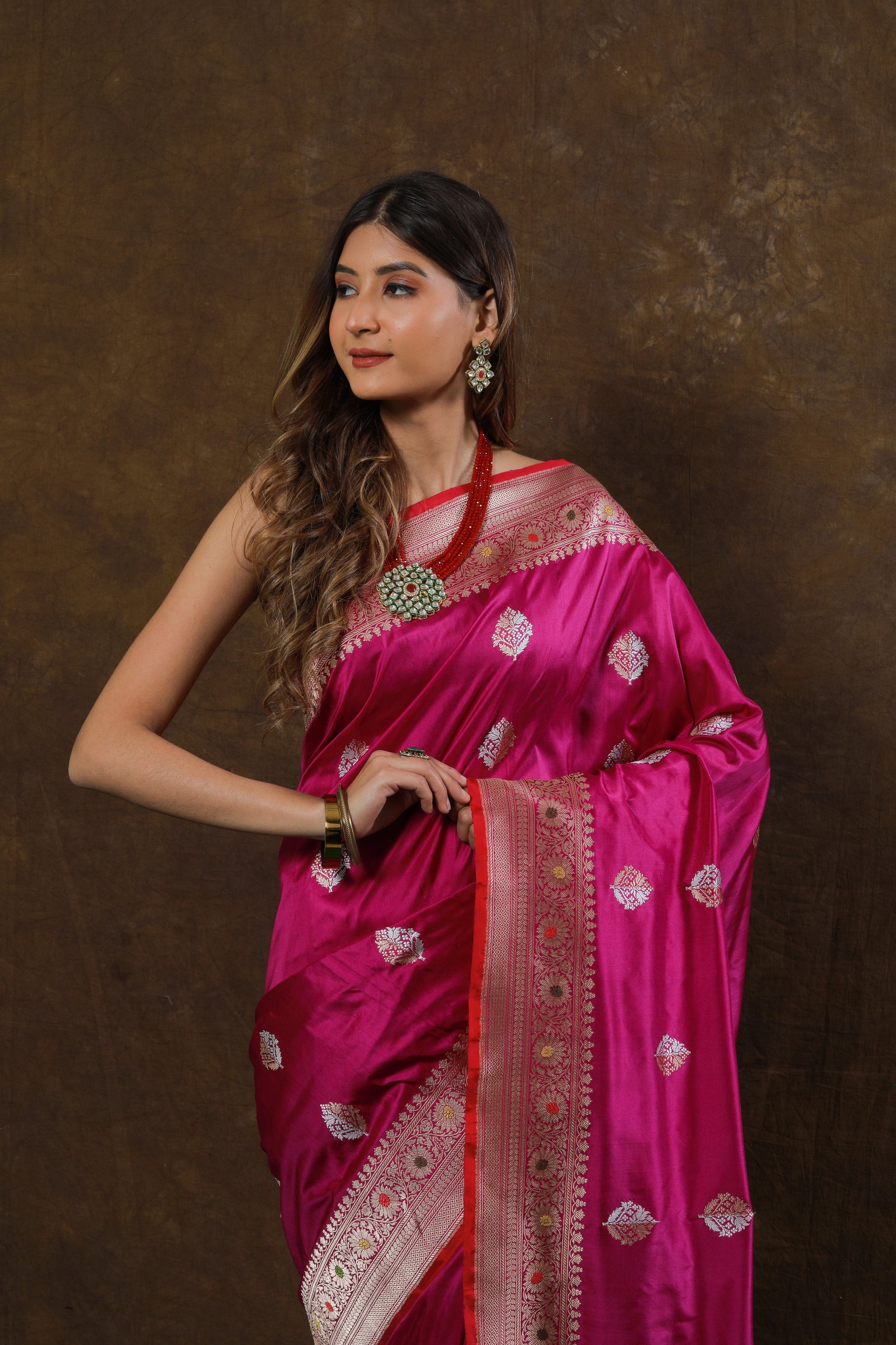 Rani Pink Handwoven Kadwa Katan Silk Saree