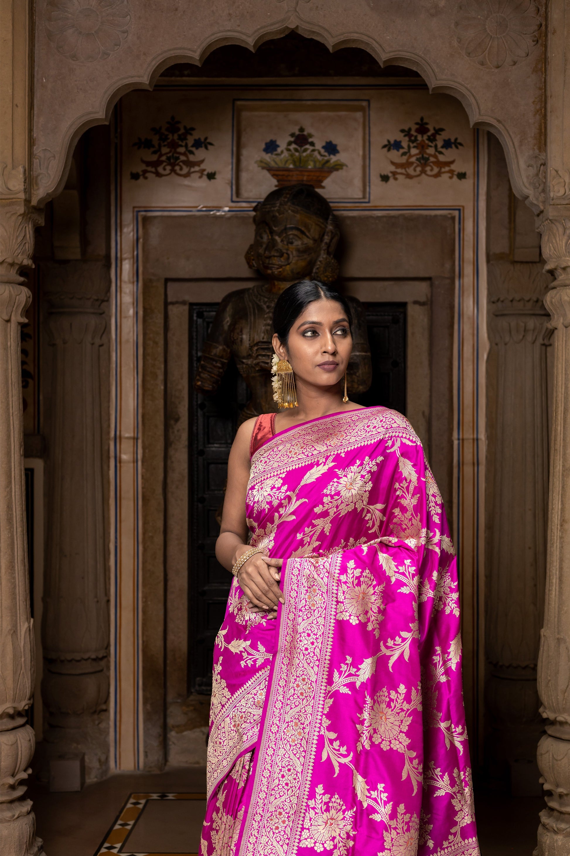 Rani Pink Handwoven Kadwa Katan Silk Saree