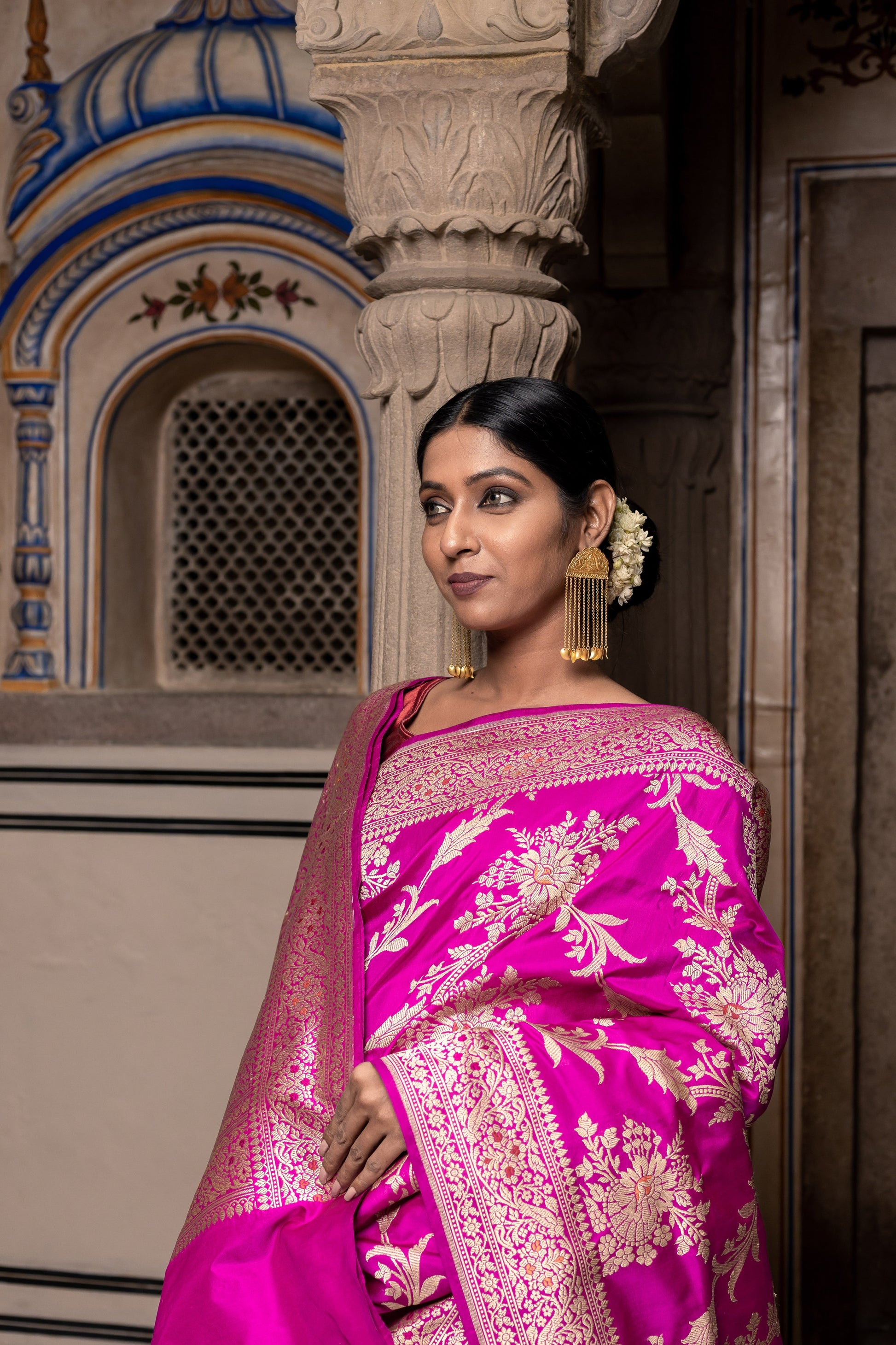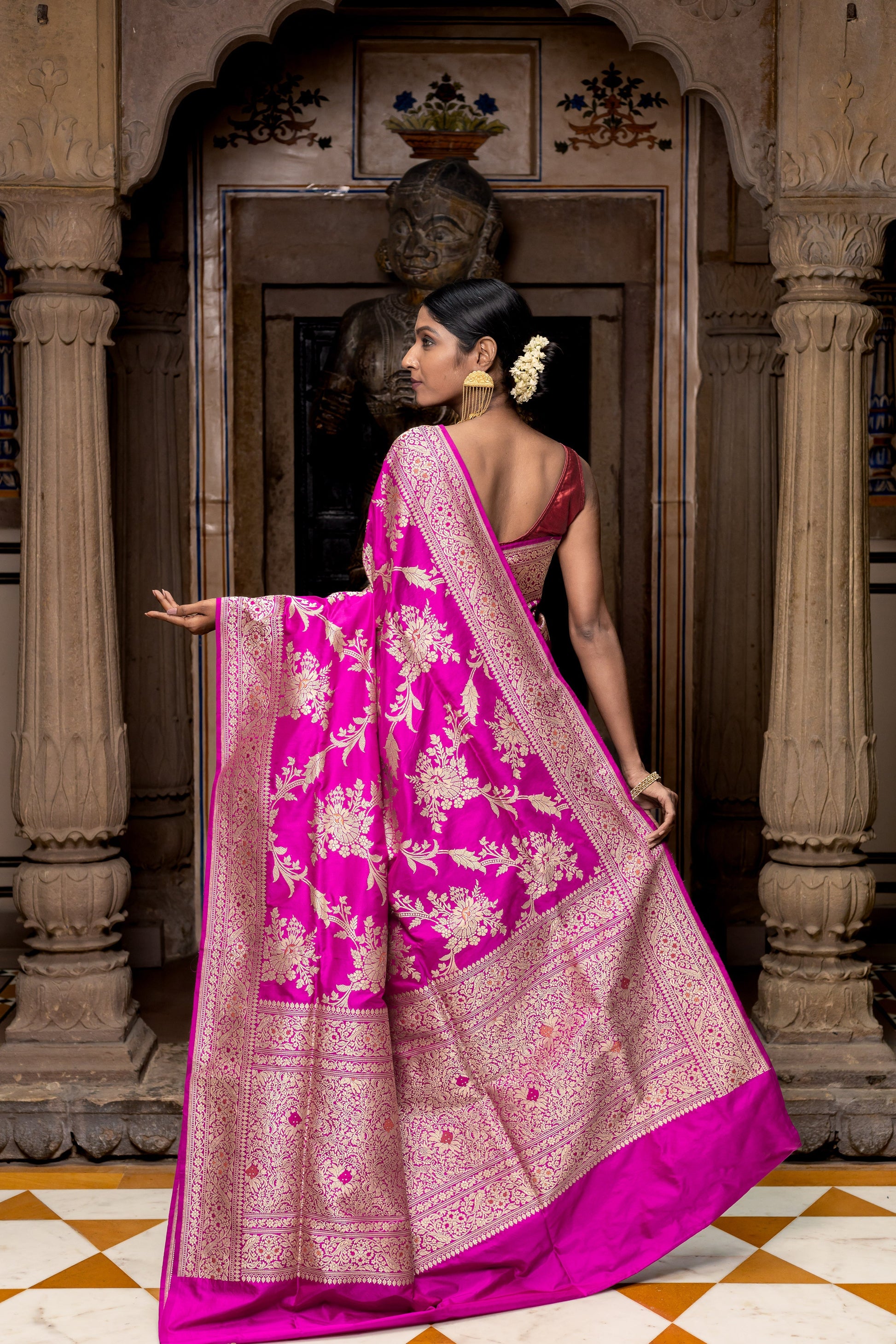 The Rani Pink Handwoven Kadwa Katan Silk Saree is a true representation of the artistry of Banarasi weavers. Its stunning design, intricate patterns, and superior quality materials make it an exceptional choice for those who seek to celebrate the legacy of Indian textiles.