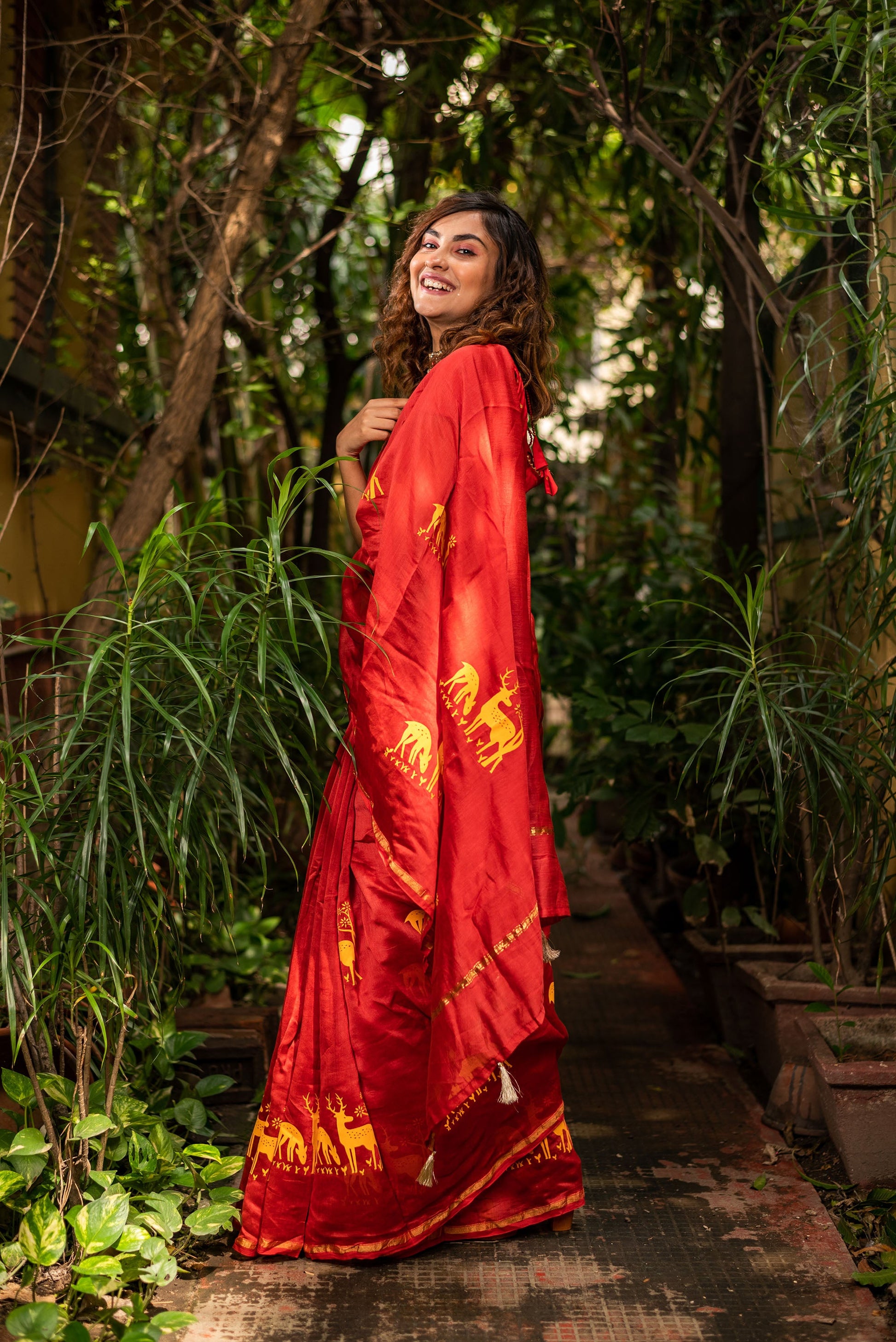 Personify elegance in the timeless beauty of this enchanting Red Chanderi Silk Saree.