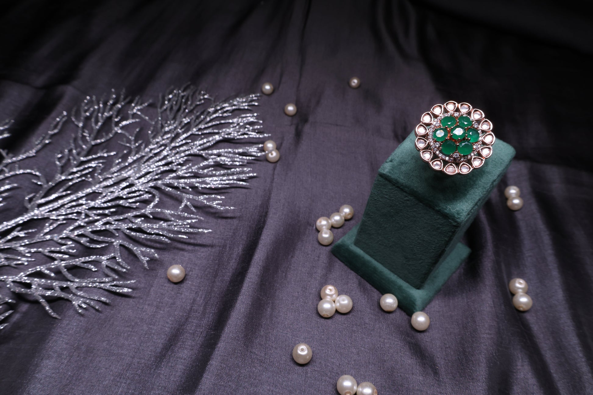Green Rose Gold Adjustable Ring