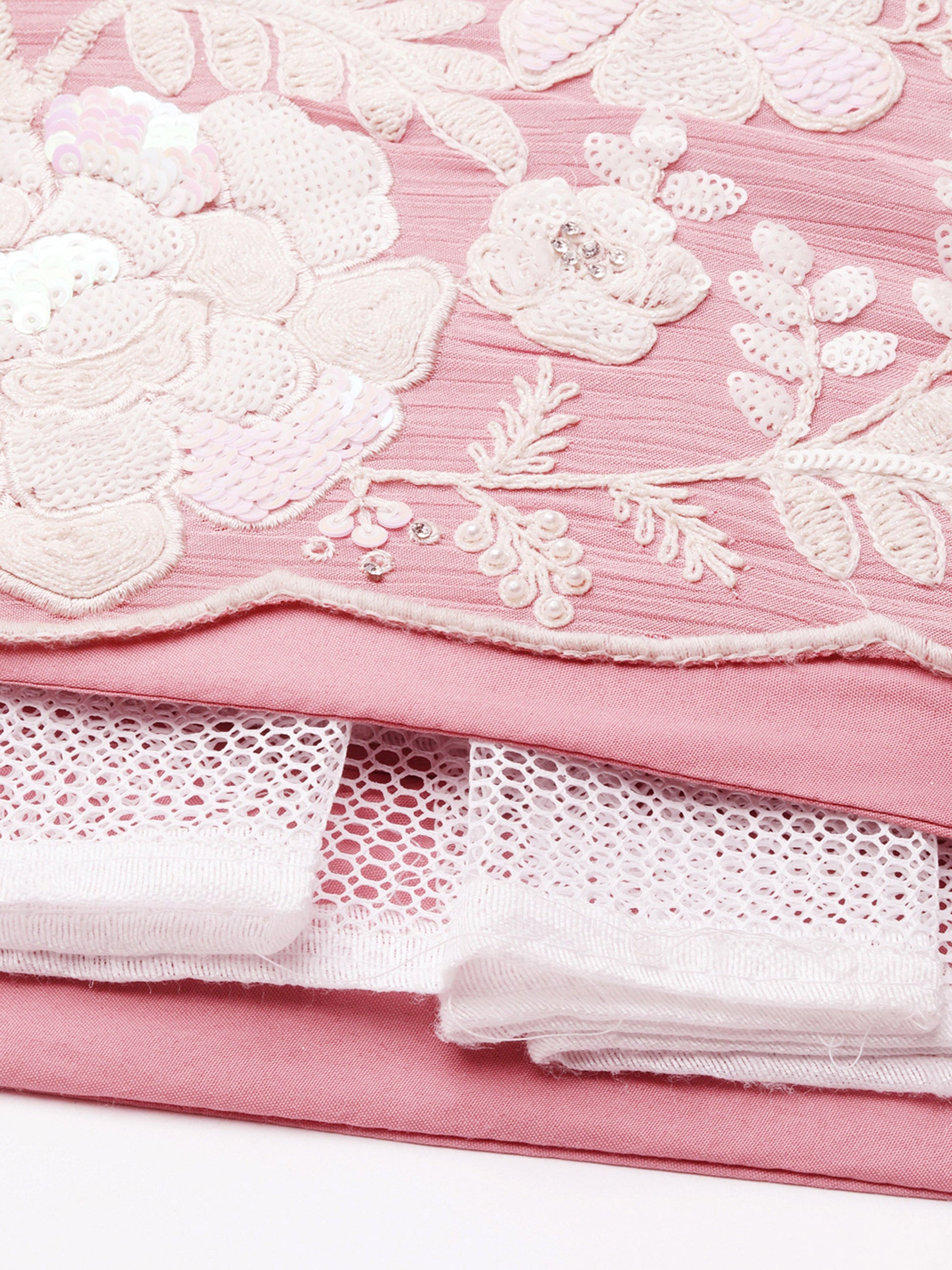• Dupatta:- Rose gold Net Dupatta has a Sequins work Ethnic motif with Embroidery cut work Border.