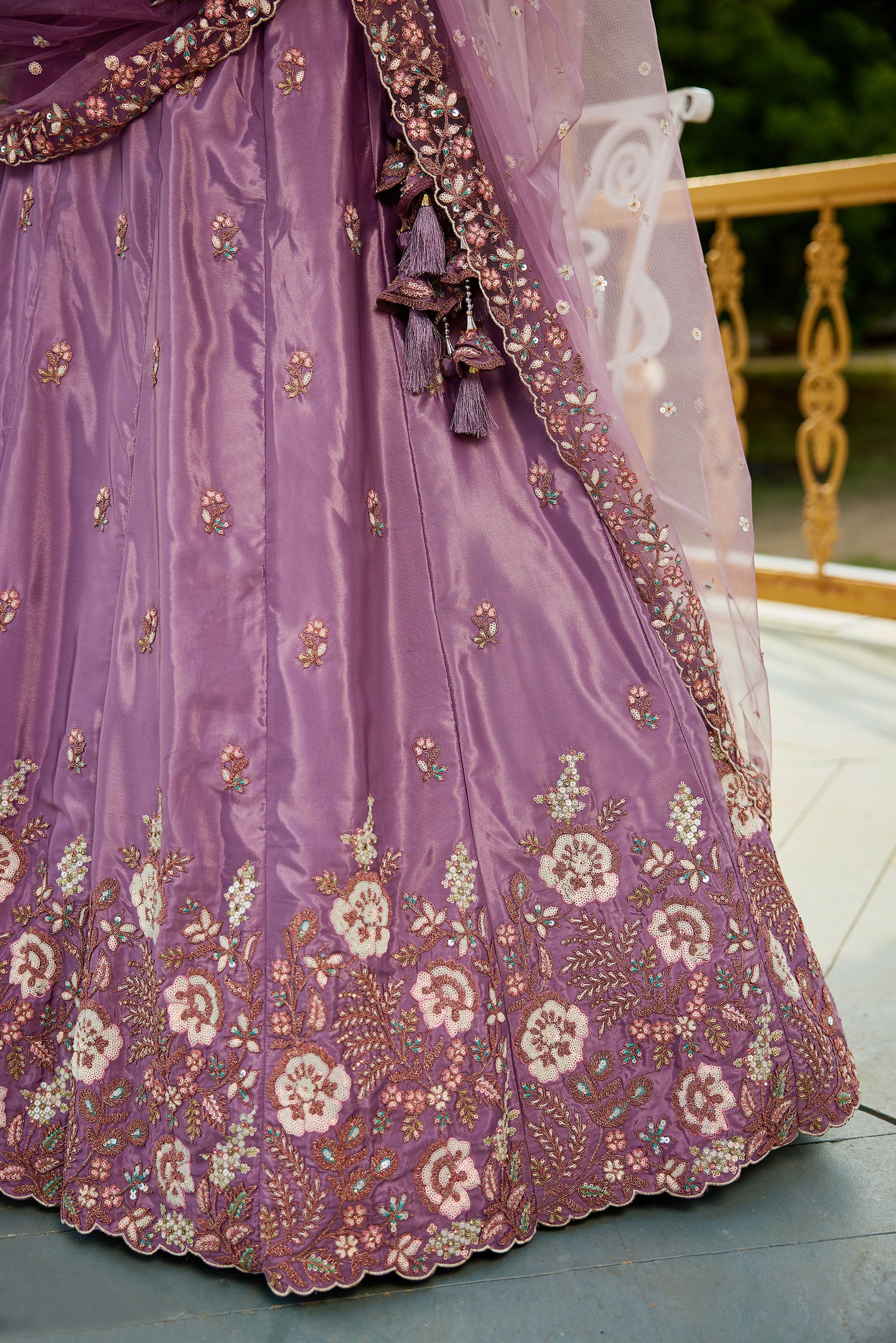 Rose gold colour Satin Sequins embroidery Lehenga choli & Dupatta