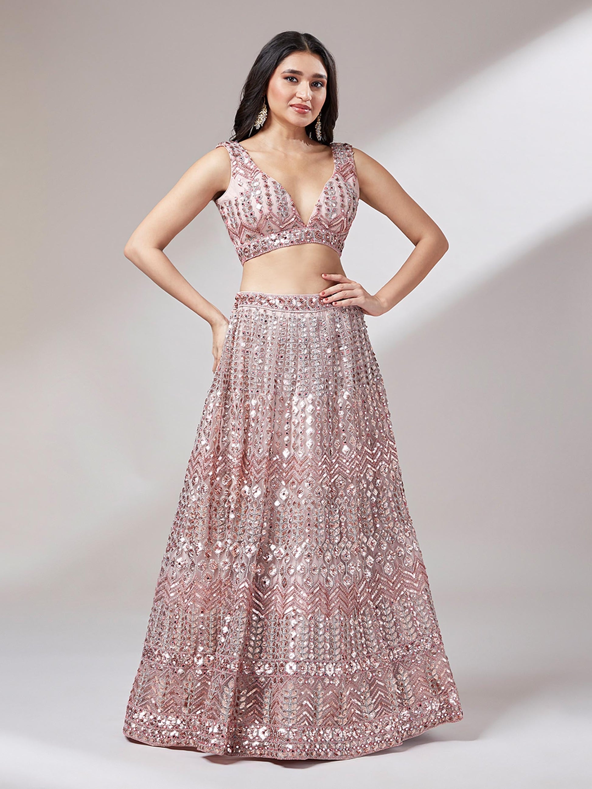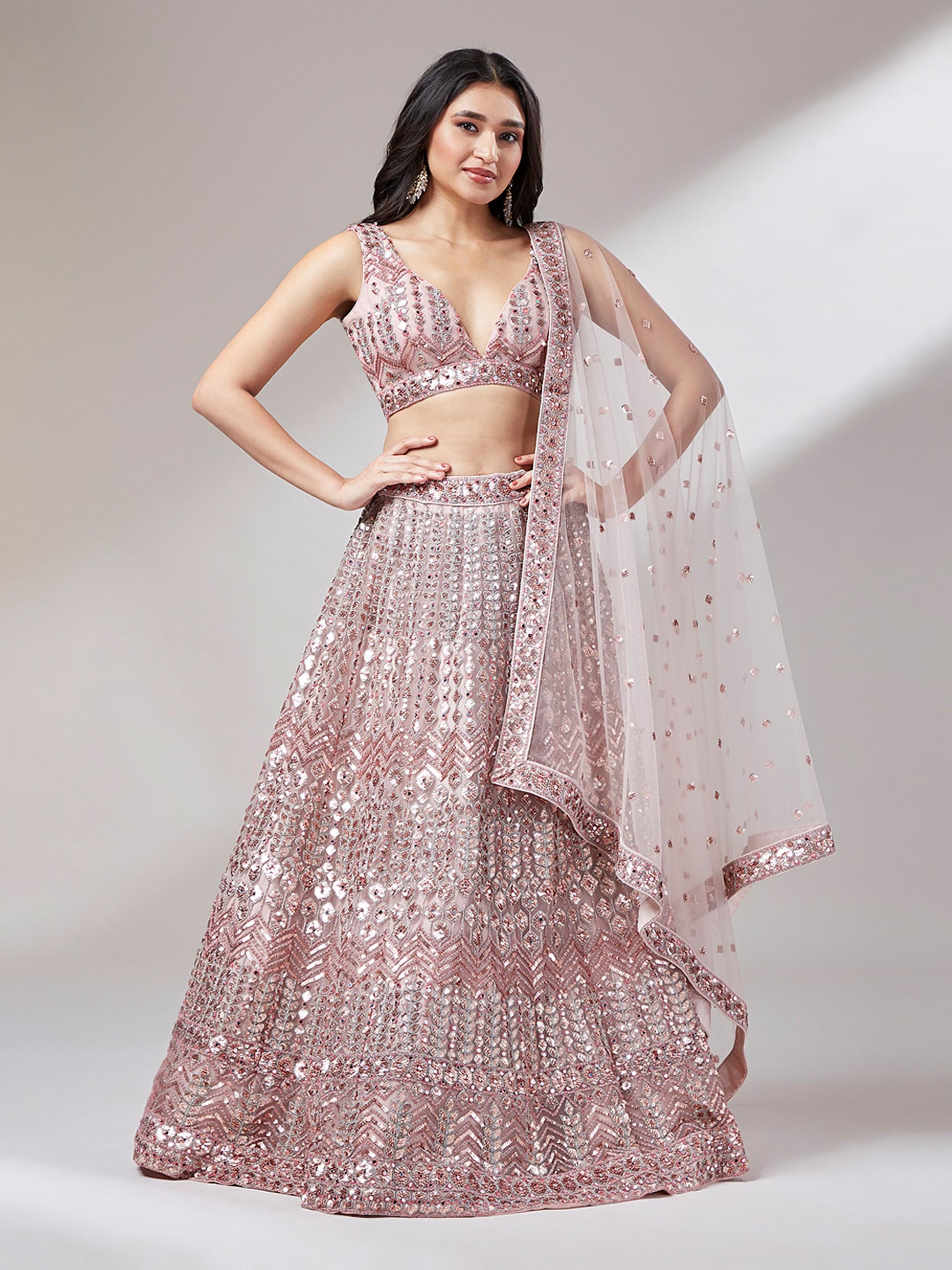 Rose Gold Net Mirror & Sequinse embroidery Lehenga