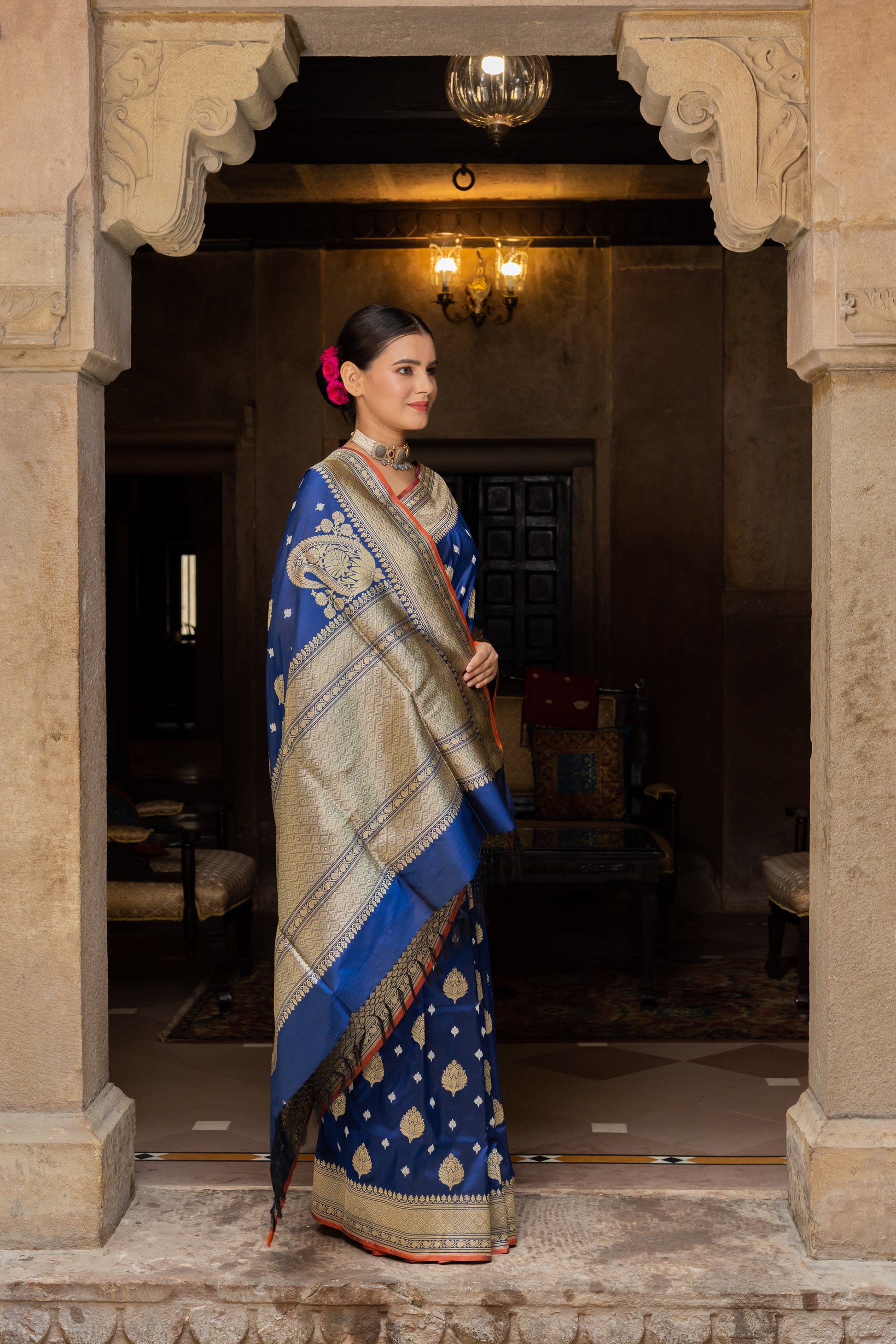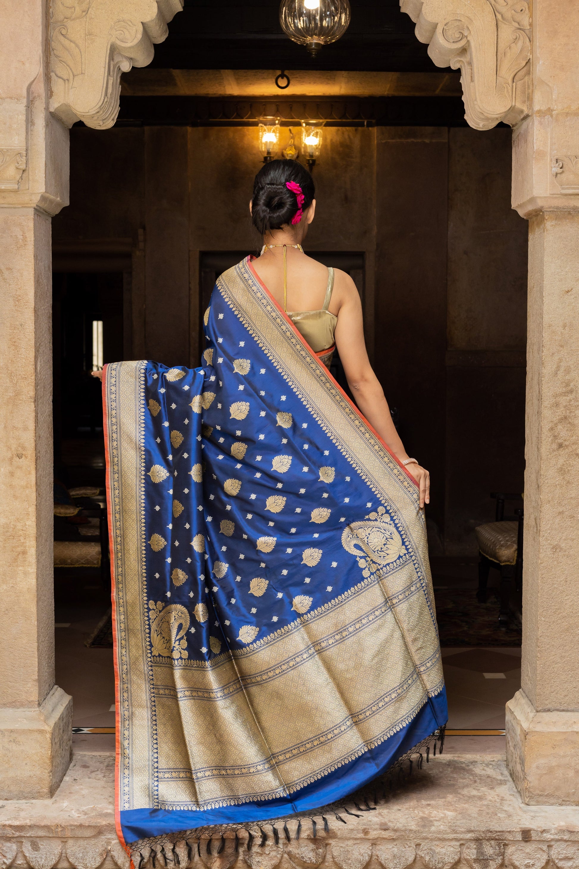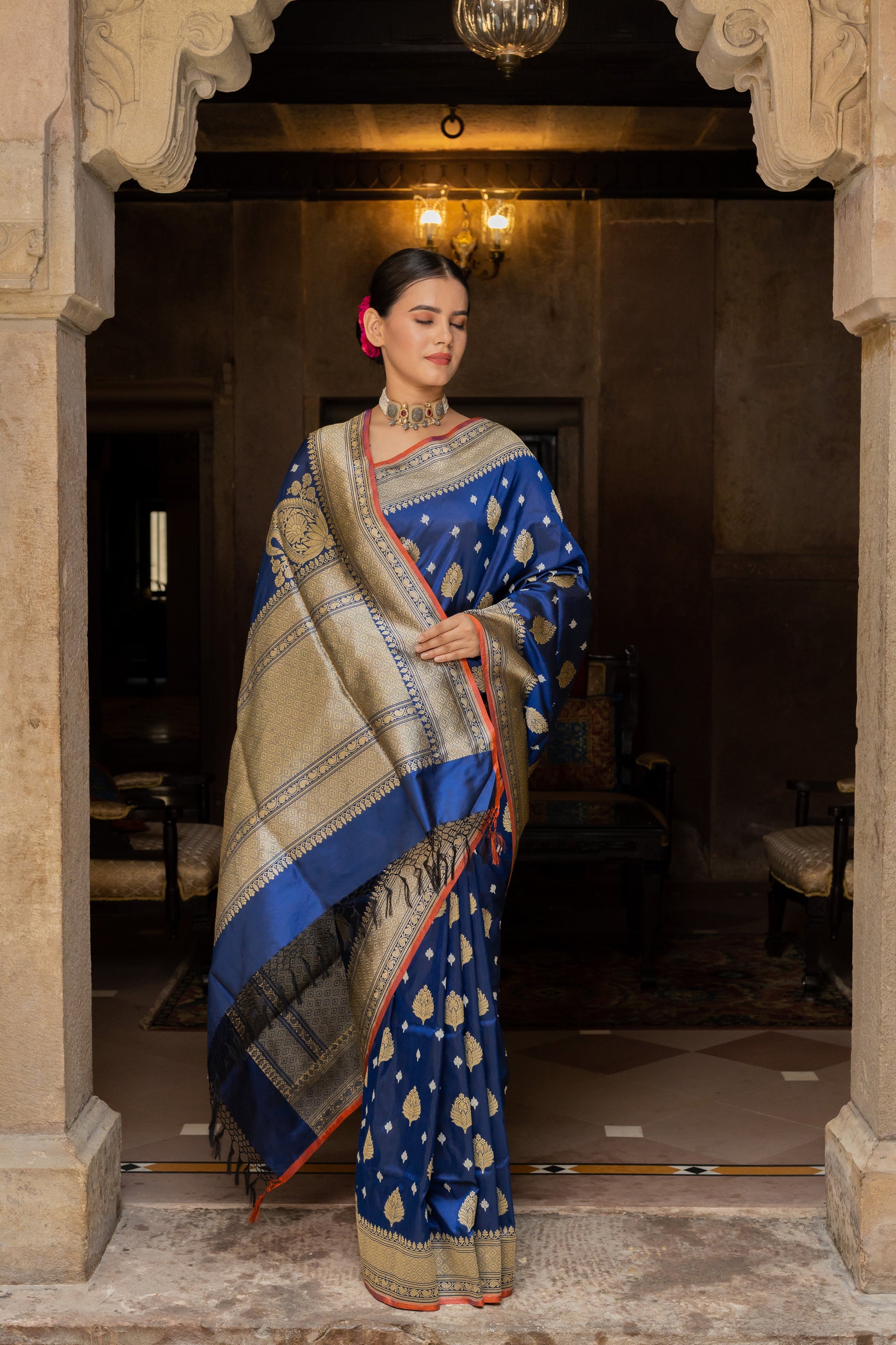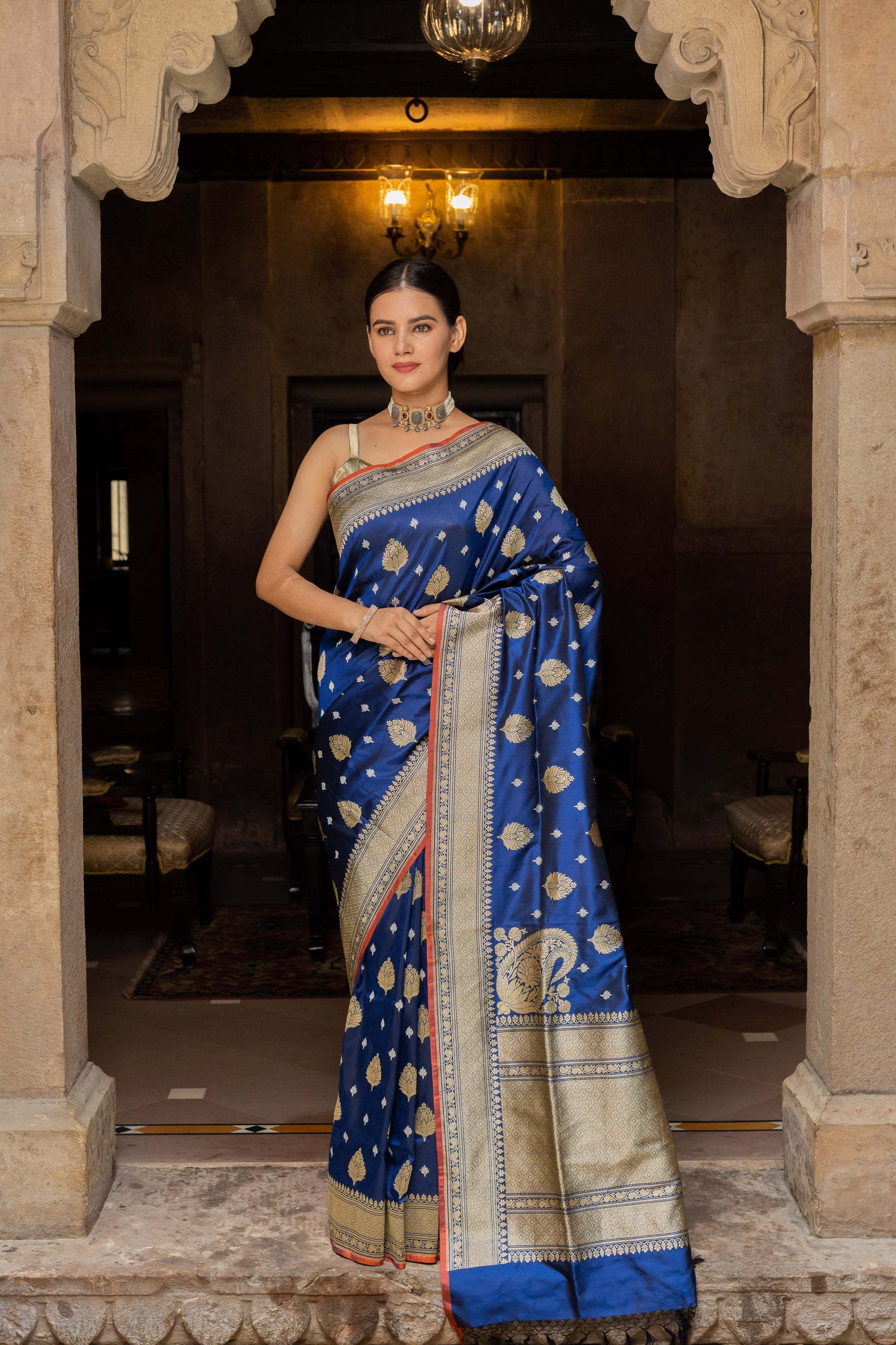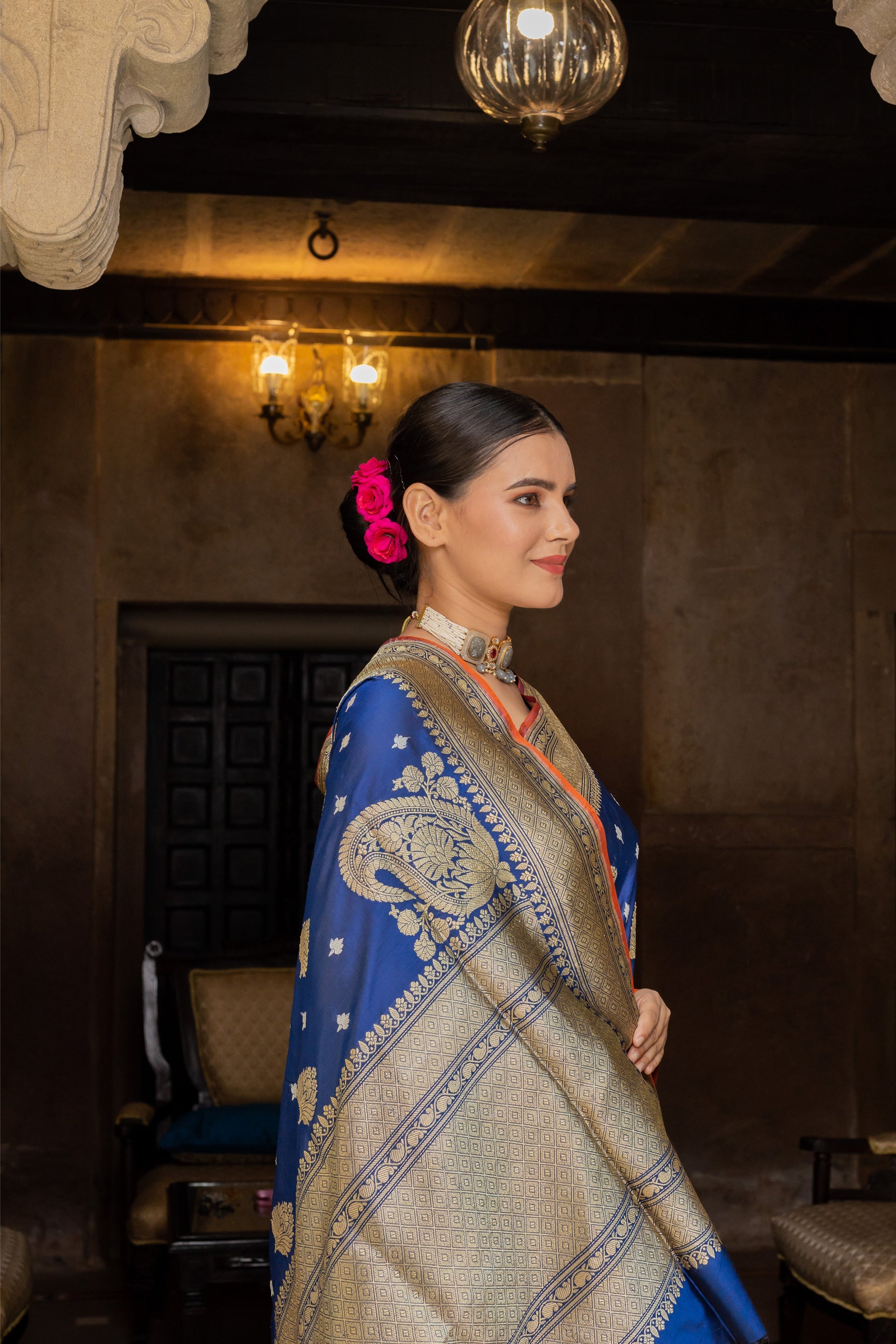 Royal Blue Handwoven Kadwa Katan Silk Saree
