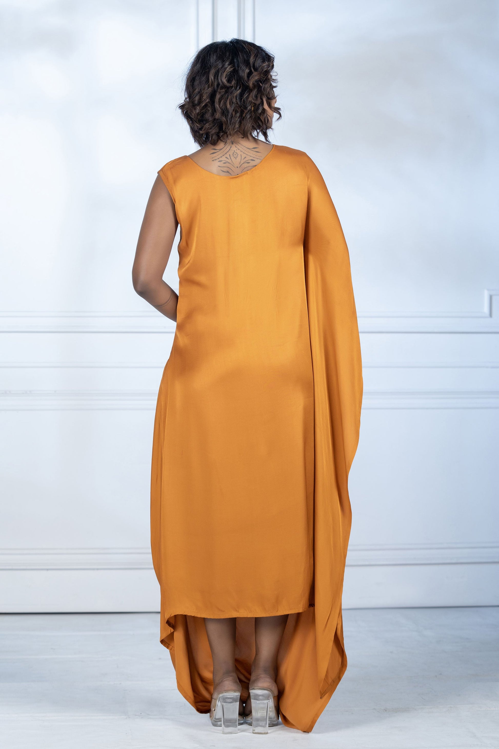 Rust Orange Gaji Silk Arabian Cowl Tunic