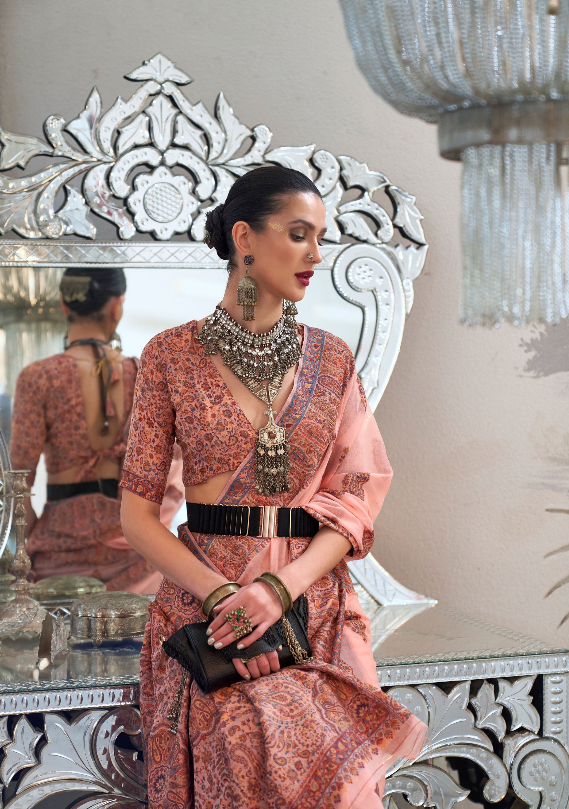Salmon Pink Kqaalib Kashmiri Handloom saree