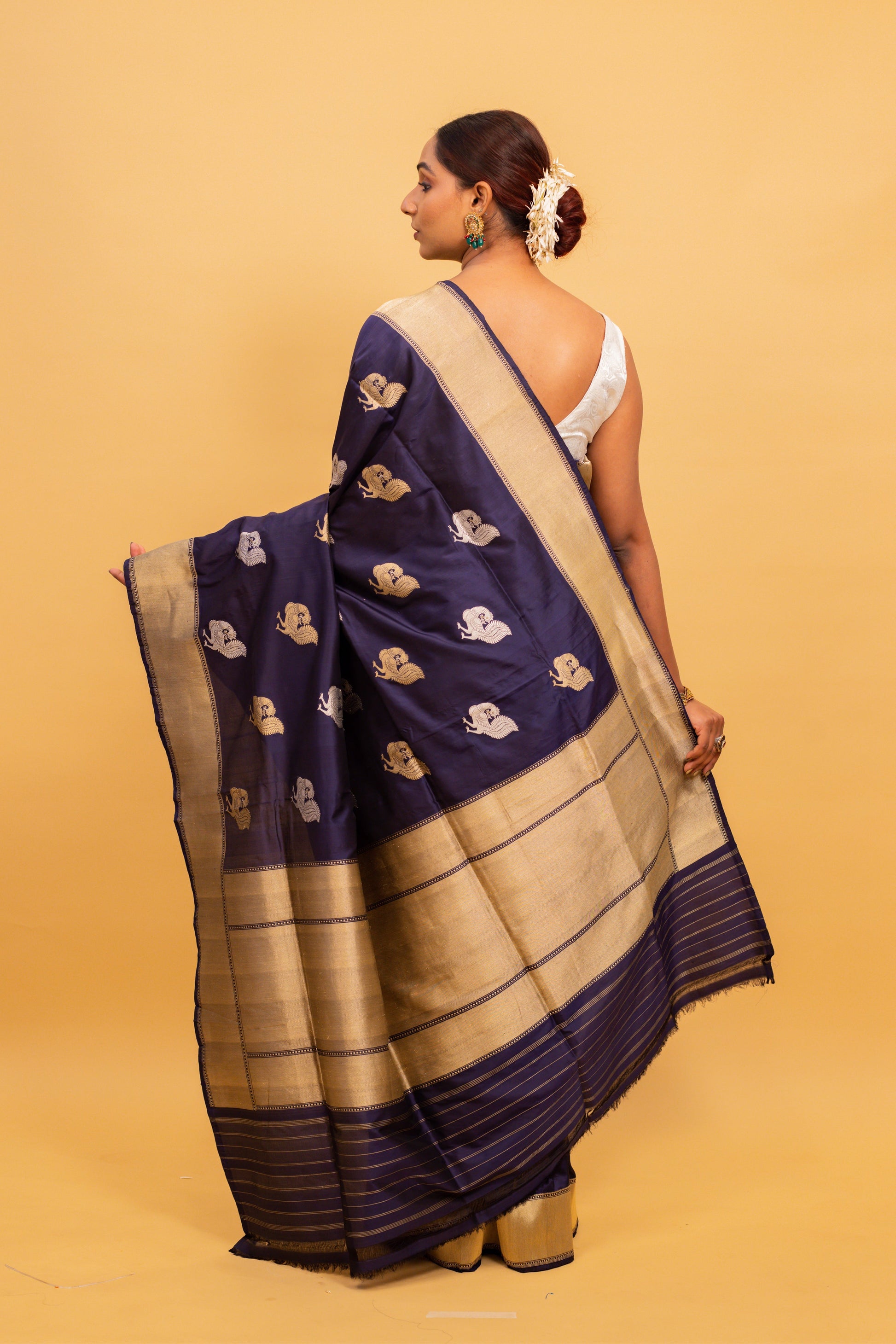 Navy Blue Saree Katan Silk Handwoven
