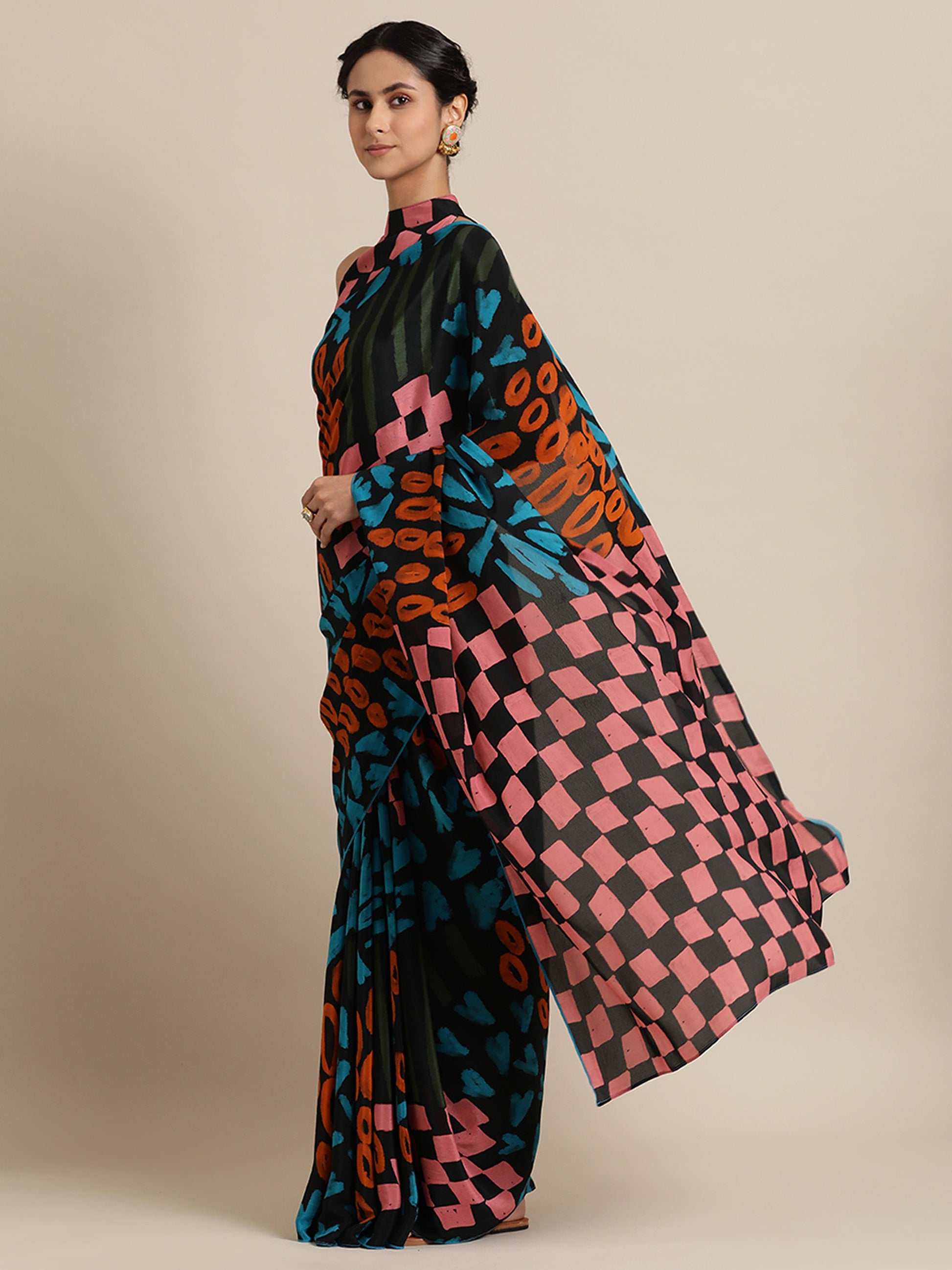 Shape Kaleidoscope in Natural Crepe Black Saree