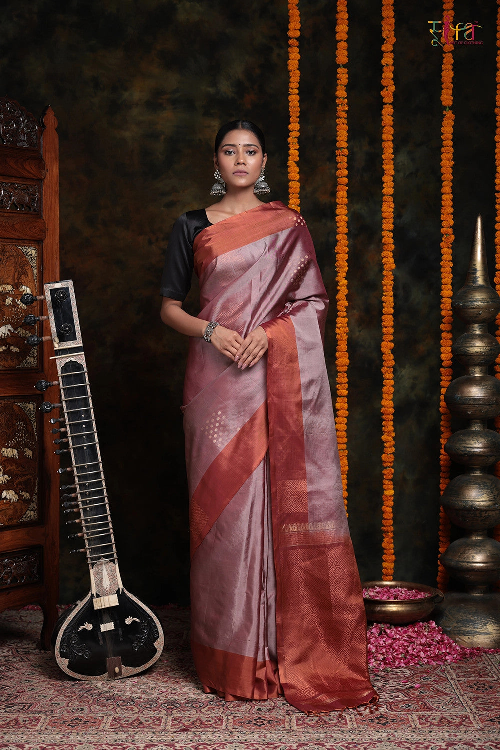 Experience our stunning handwoven saree in a mesmerizing combination of Carnation Pink and Burnt Orange. Prepare to be enchanted by its exquisite Gold Zari Motifs meticulously crafted to perfection. This saree is a true embodiment of elegance and a must-have addition to your collection. With exceptional weaving skills and uncompromising quality, it showcases the epitome of artistry. The Burnt Orange border, adorned with enchanting all-over Motifs, effortlessly emanates grace and charm, making it the perfect choice for any occasion.