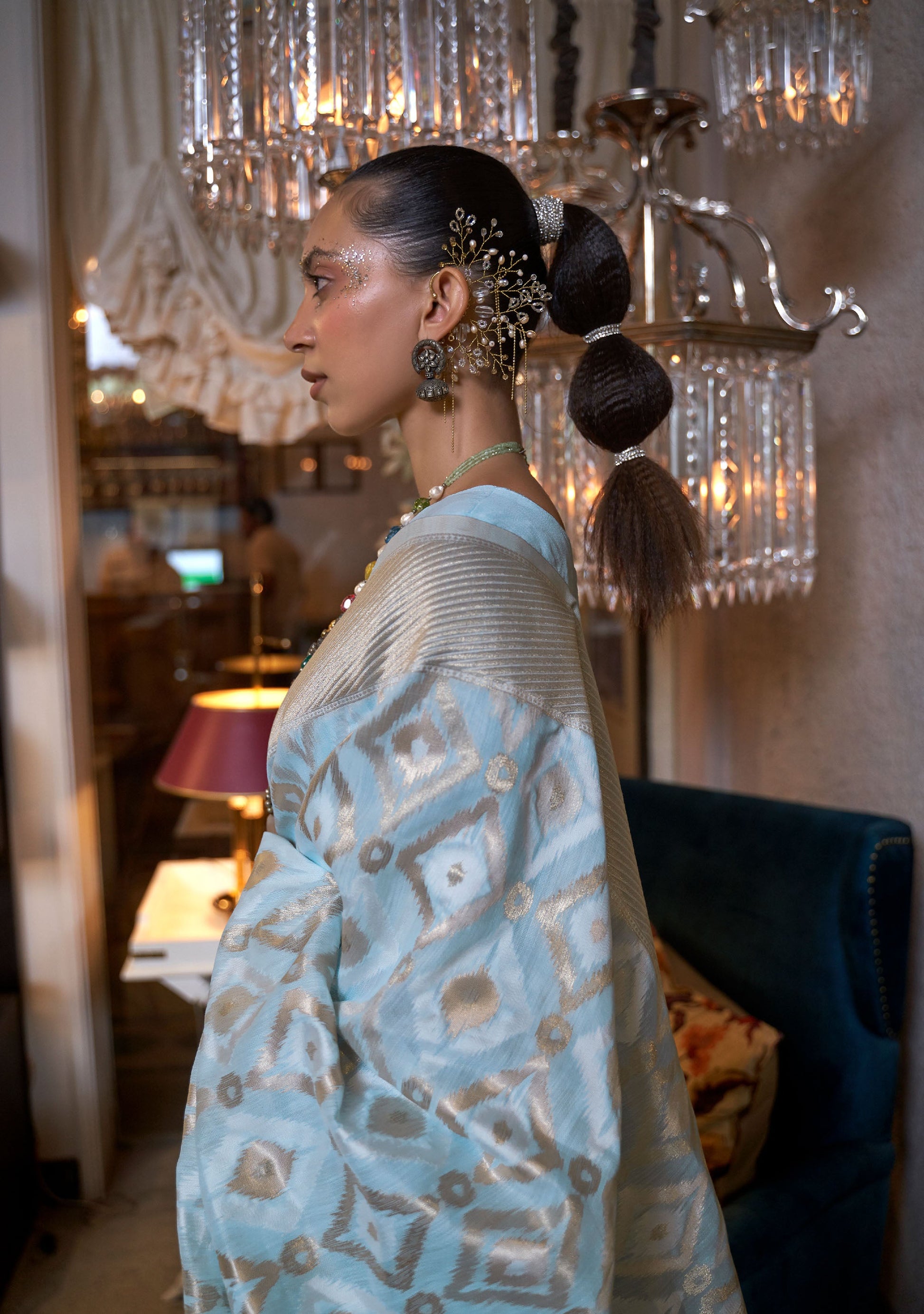 Does your wardrobe need more versatility? Then, check out this. Let your skin feel the refreshing touch as you adorn this superior-quality lightweight Saree to match the overall modest design.