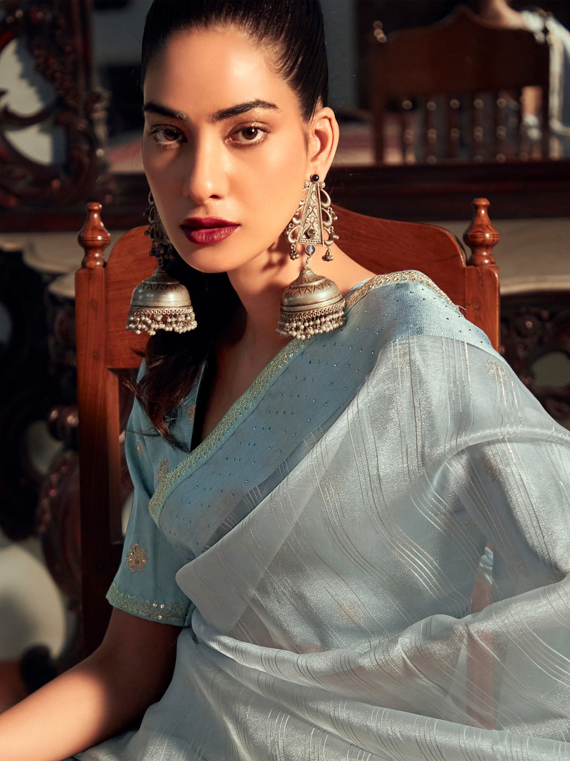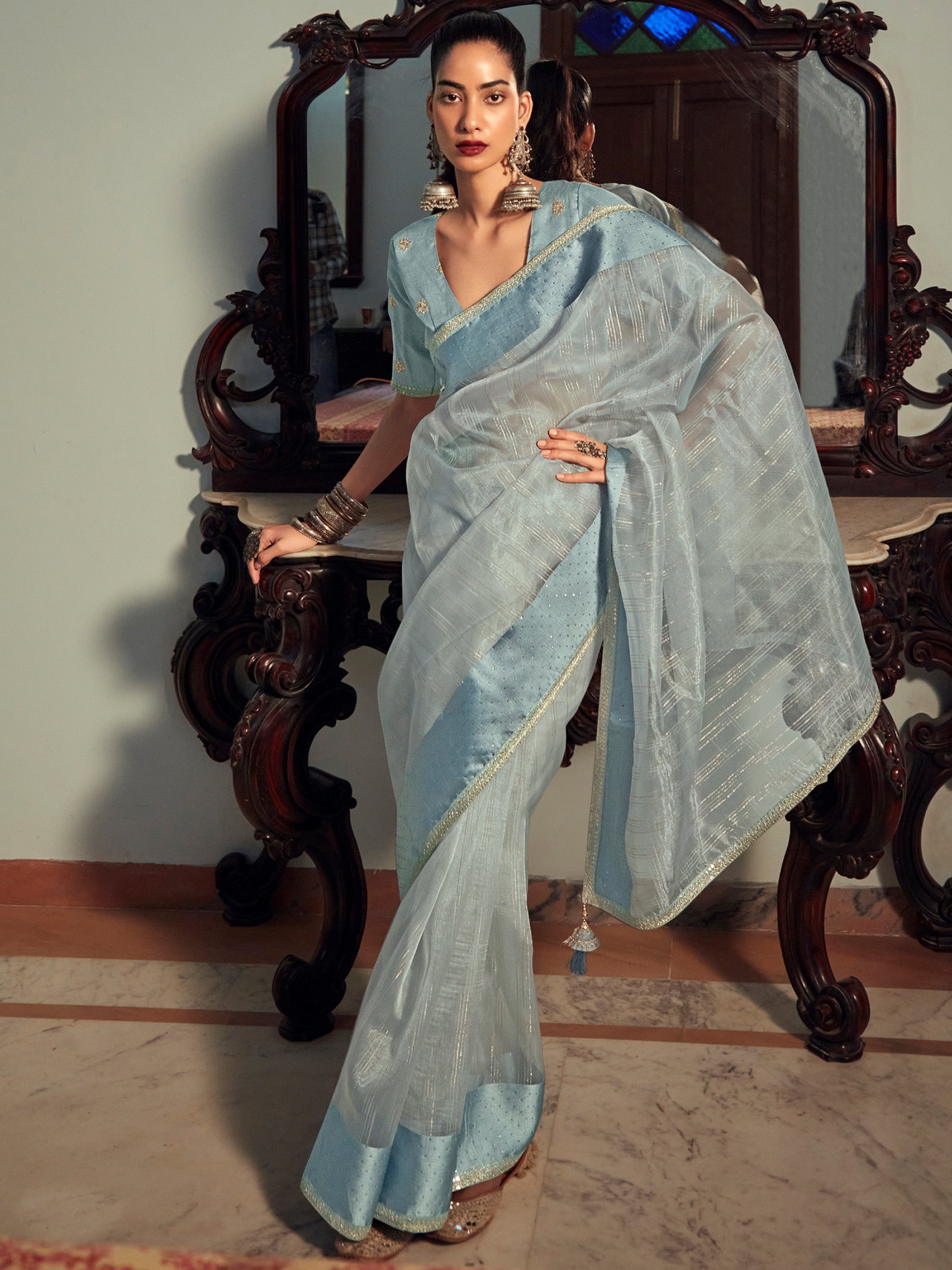 Organza Woven Saree. Pair them with matching accessories to look trendy and gorgeous. Organza Fabric With Jari & Embroidered Blouse With Crystal, Tassels.