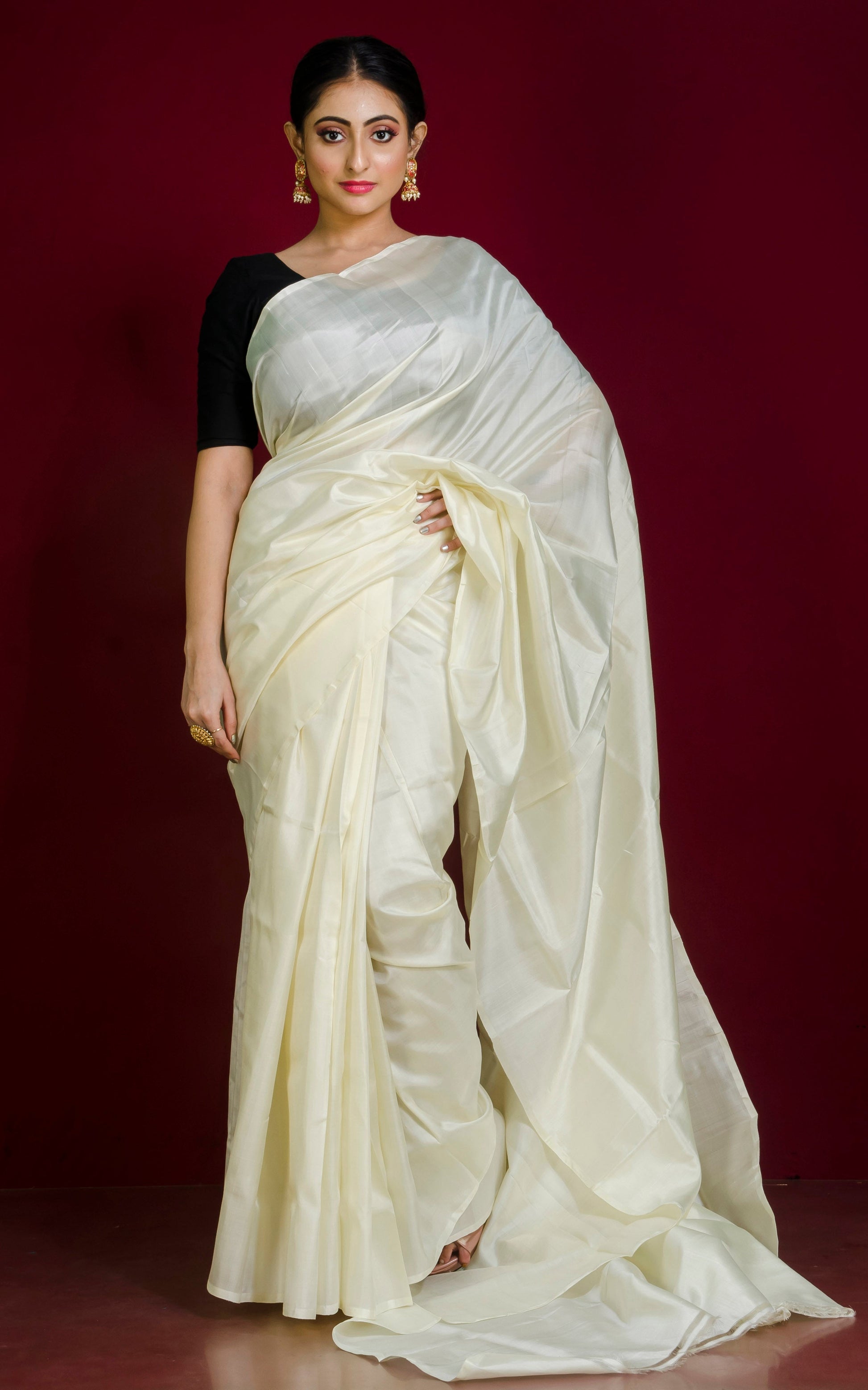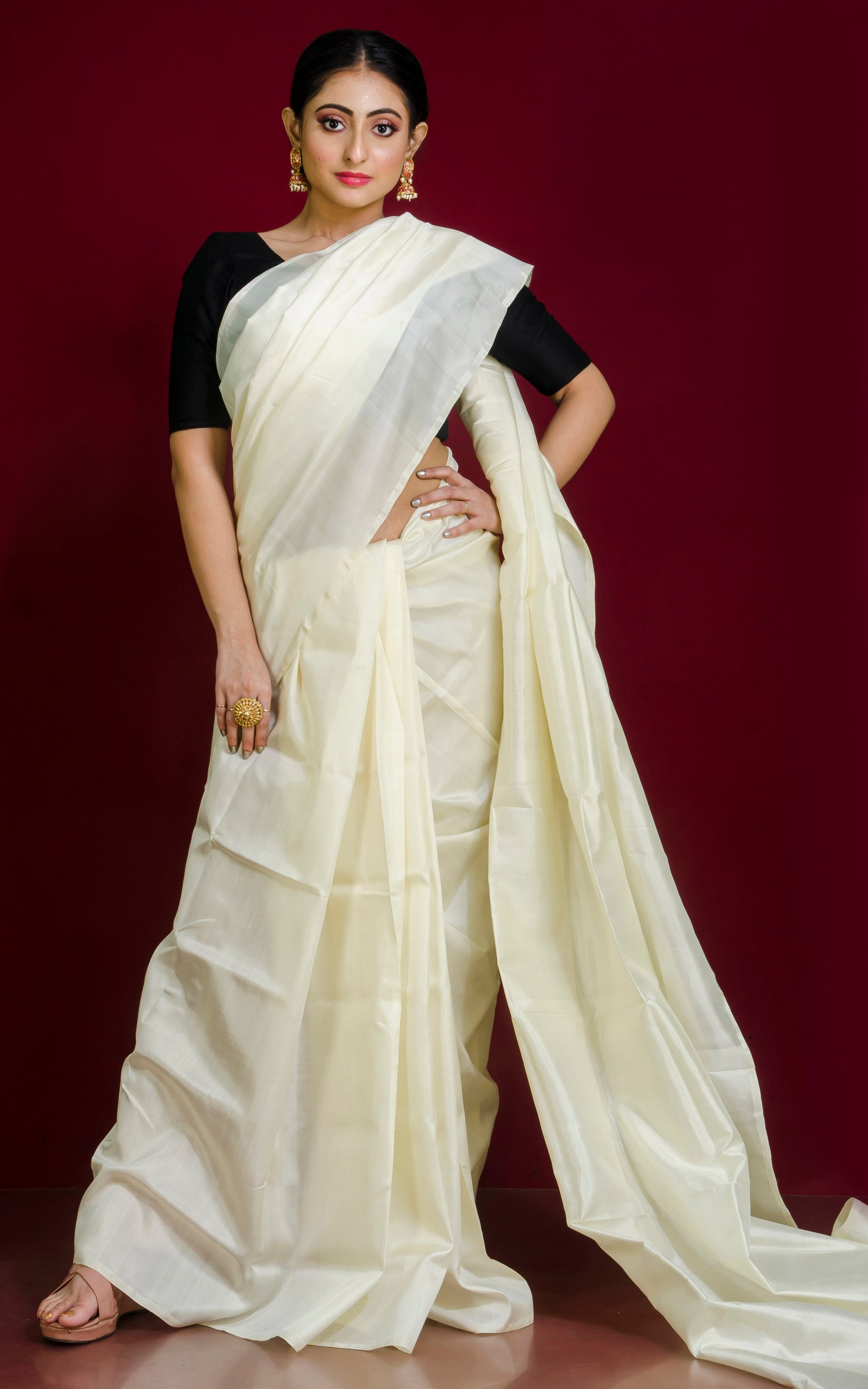 Soft Bishnupuri Katan Silk Saree in Chiffon White