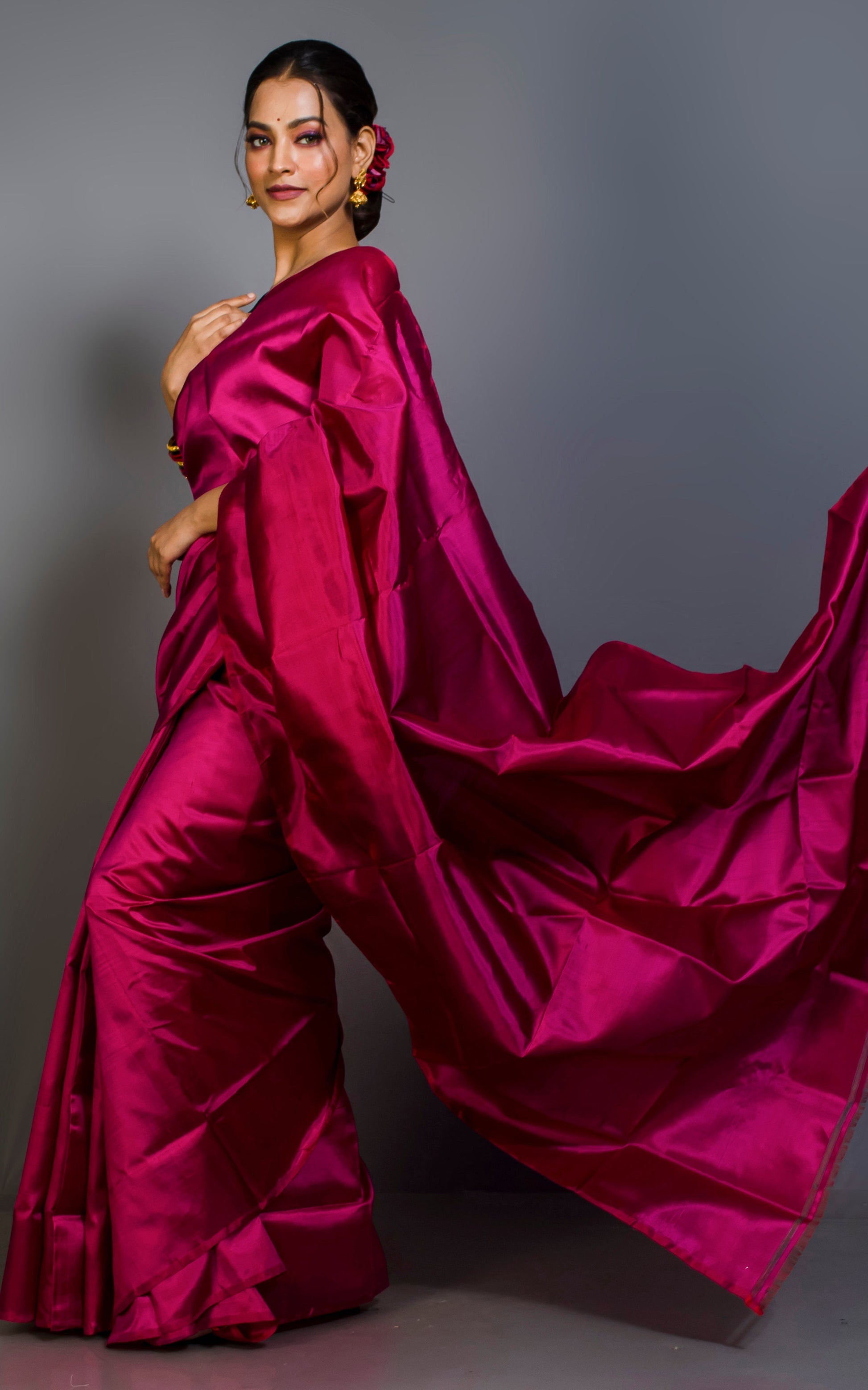 Soft Bishnupuri Katan Silk Saree in Royal Magenta