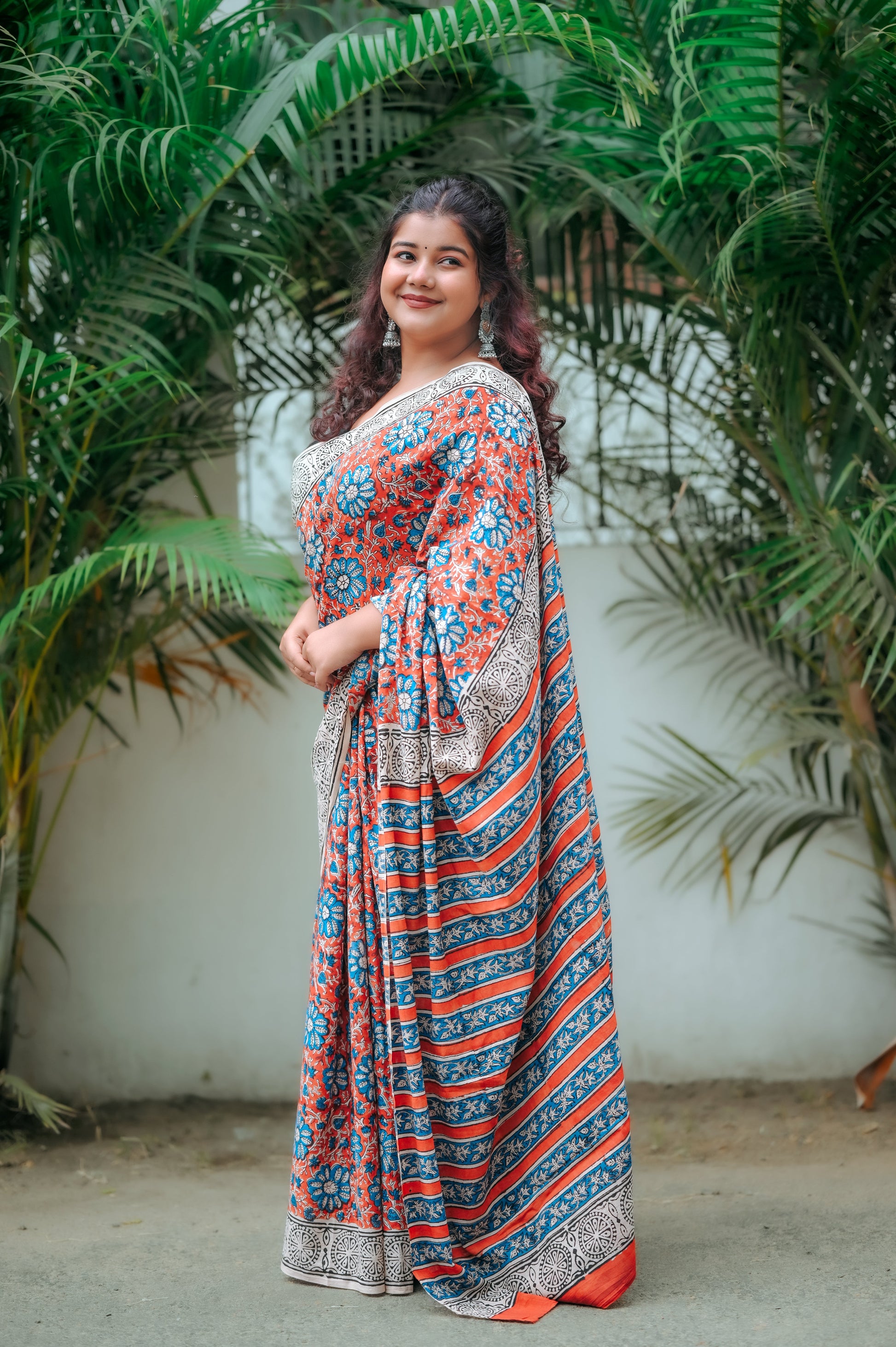 Suhani Subah - A Radiant Dawn in Every Drape - Handblock Print Natural Dyed - Mulmul Cotton Saree