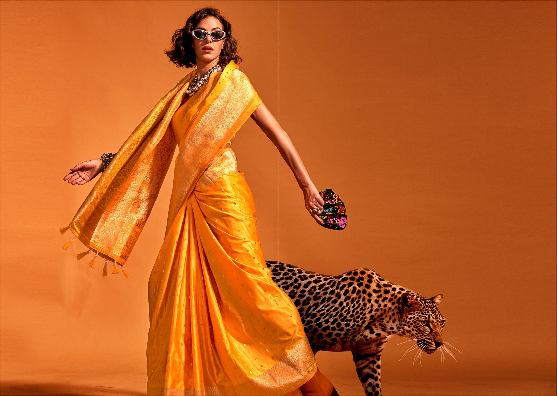 Sunshine Yellow Karnaal Pure Satin Handloom Silk Saree