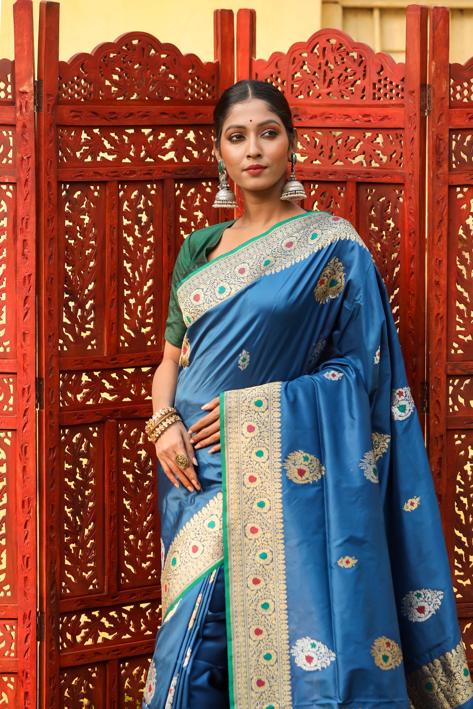This saree is a true masterpiece, reflecting the rich heritage of Banarasi handloom craftsmanship. It's perfect for adding a touch of regal charm to your festive and celebratory occasions.