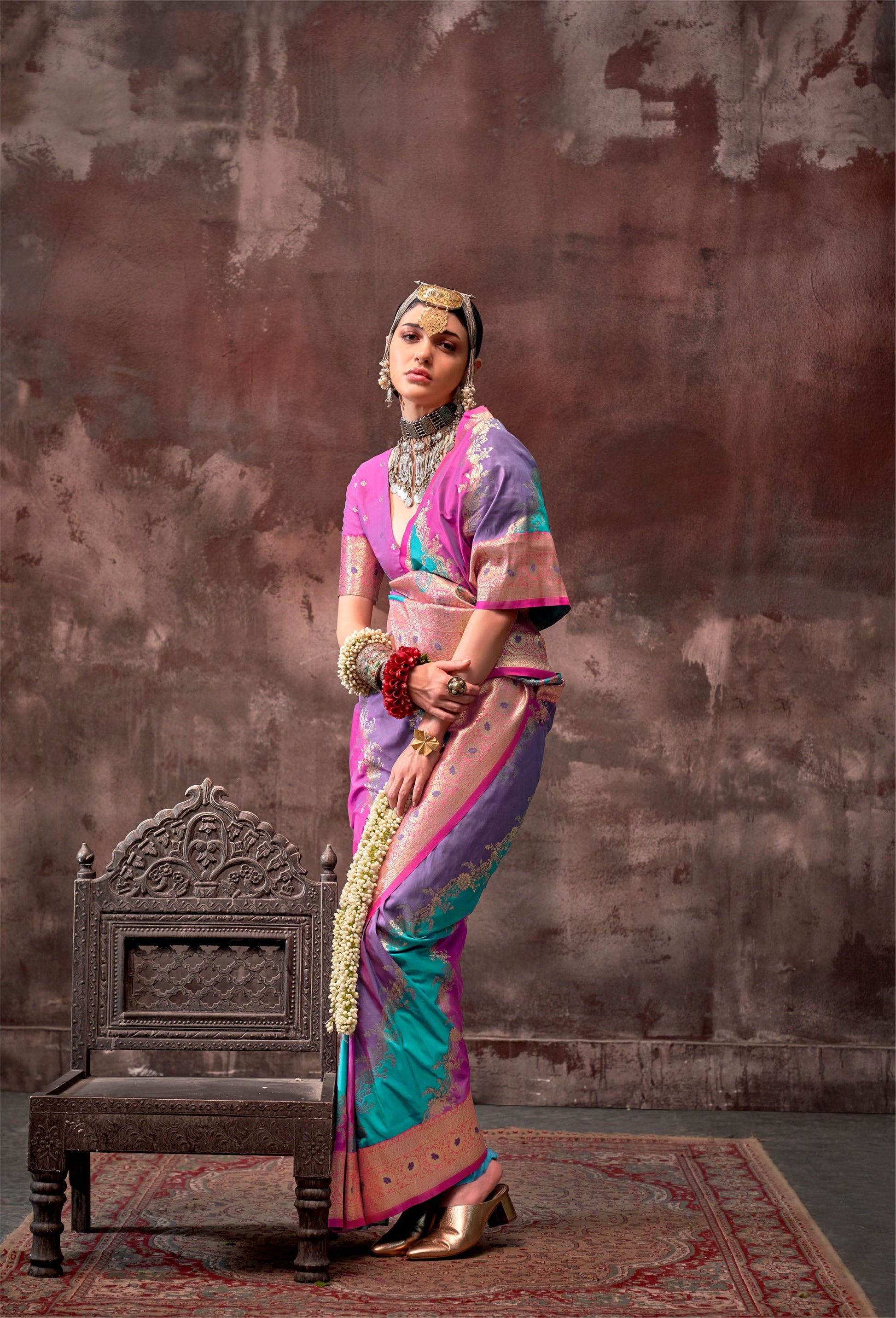 Teal Green Kookal Rangkaat Handloom Silk Saree