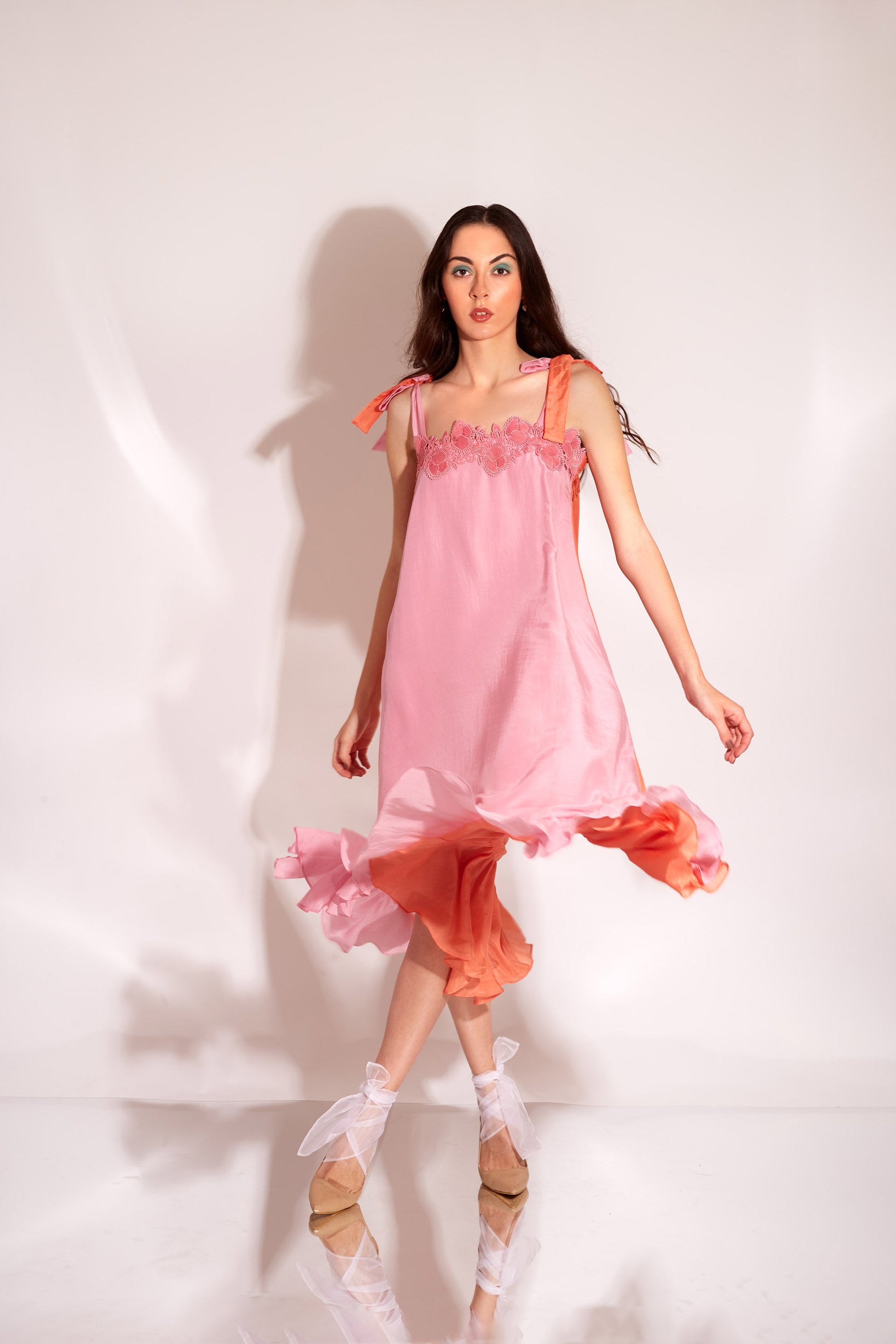 TULIP Pink and Tangerine Dress ( Dual Wearable )