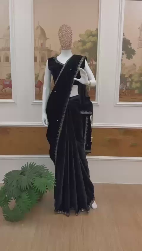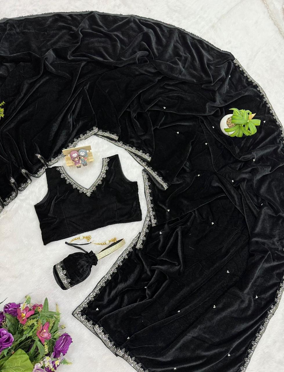 š„»WE ARE LAUNCHING NEW UPCOMMING SPECIAL WEDDING SUPERHIT TRENDING VELVET SAREE WITH EMBROIDERED & FANCY LACE BORDER WITH STITCHE BLOUSEš„»