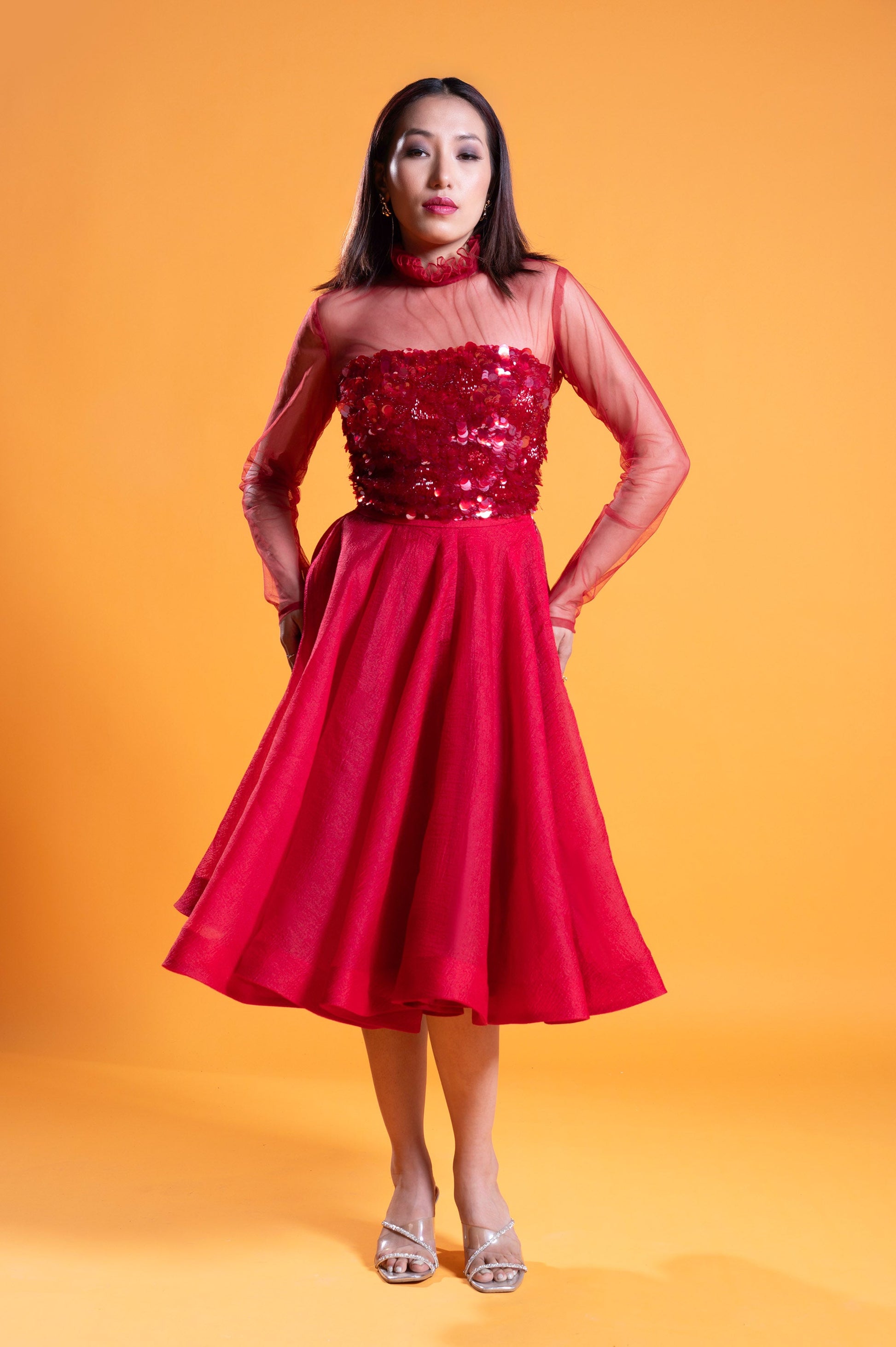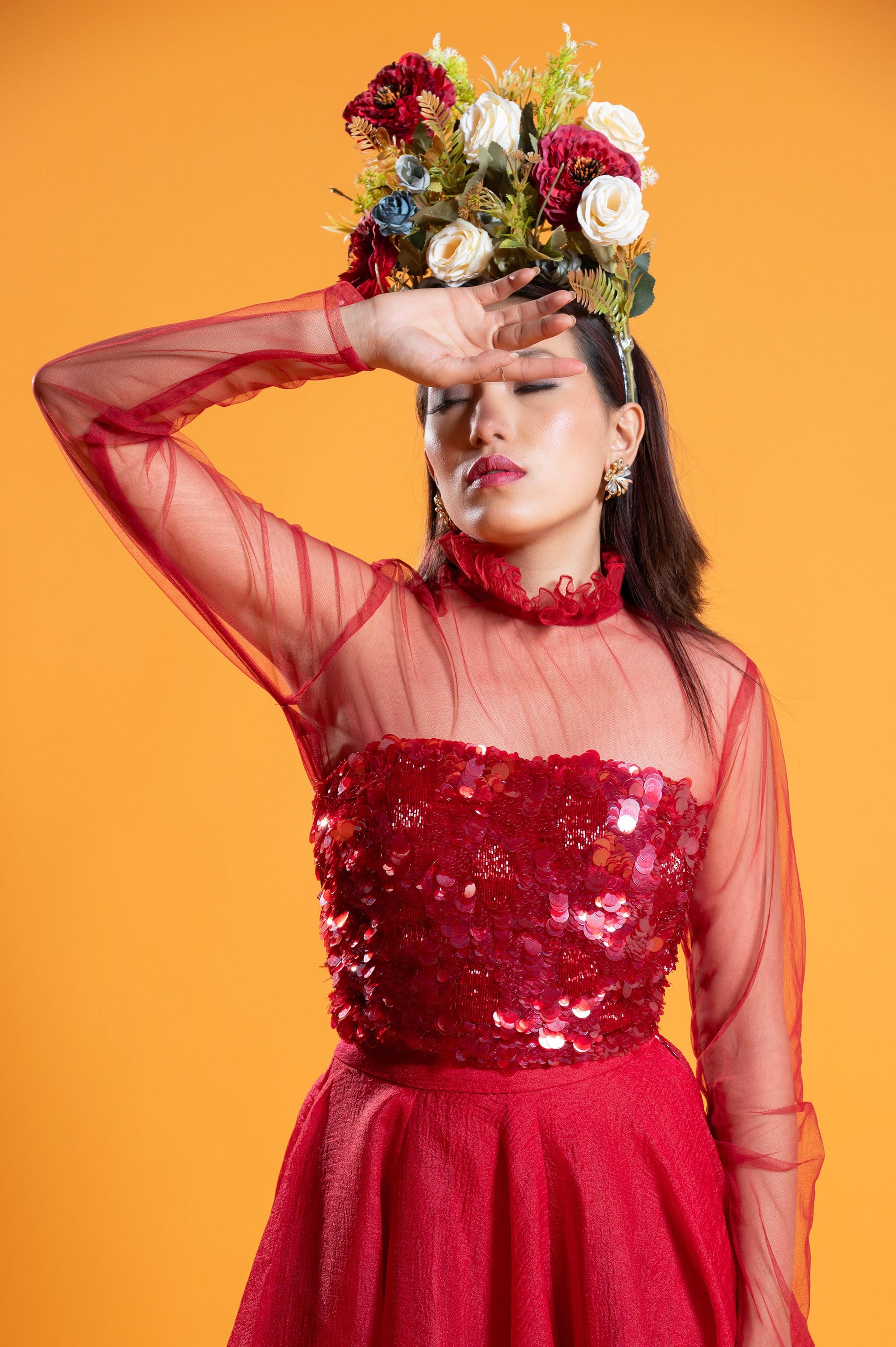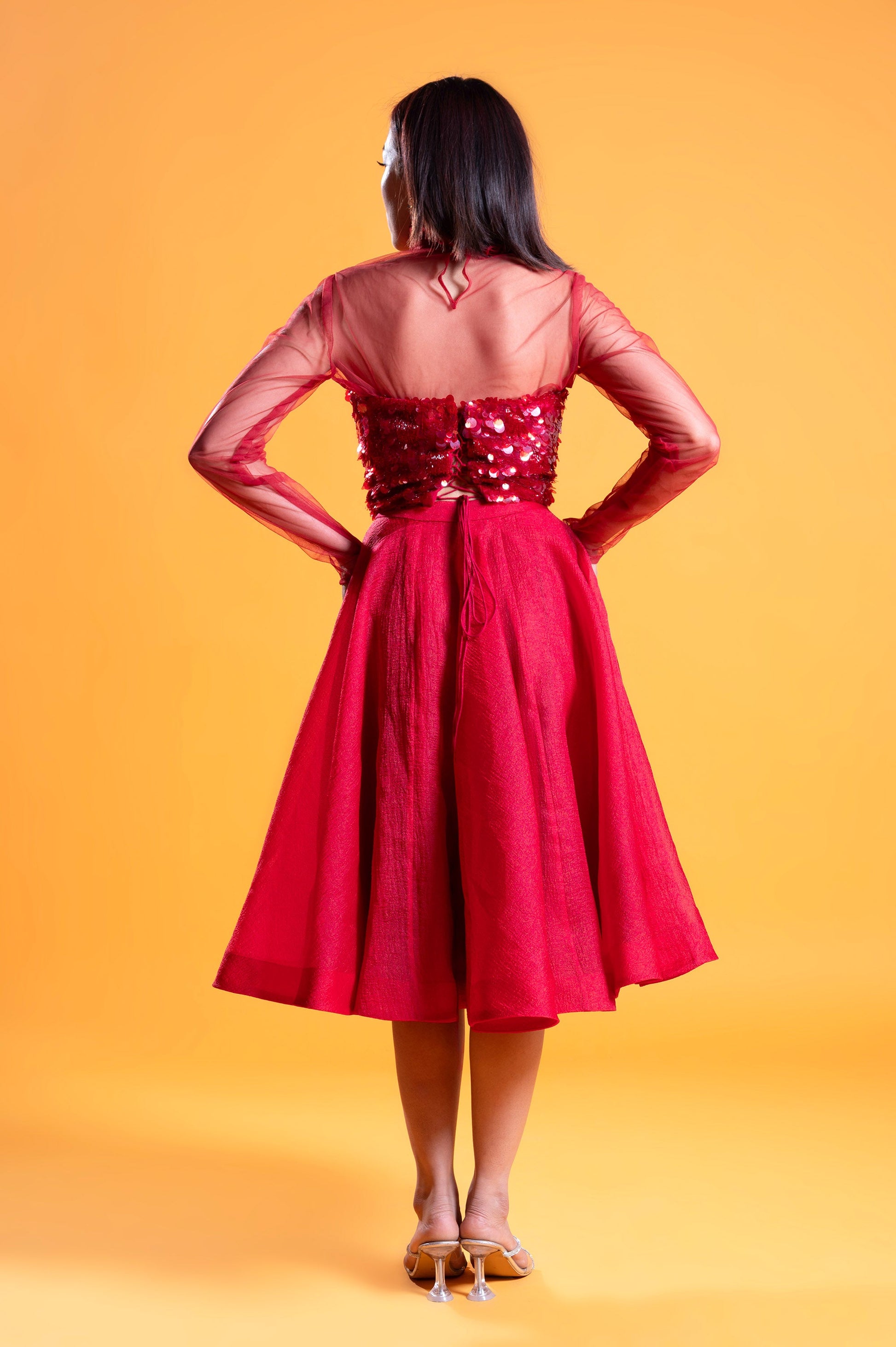 Verbena Red Satin & Tulle Three Piece Party Wear Set