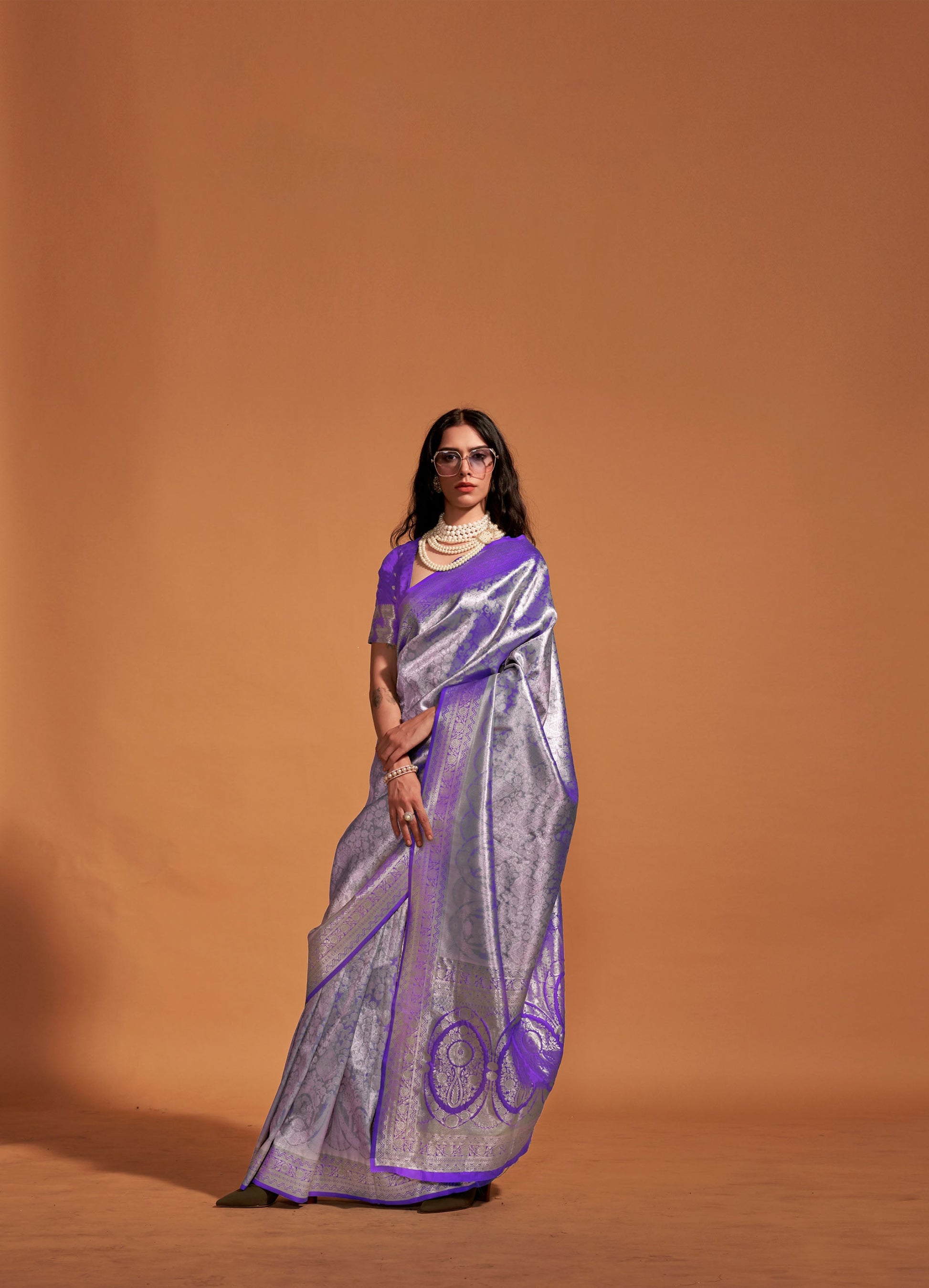 Violet Kanjeepuram Silk Handwoven Mohi Saree